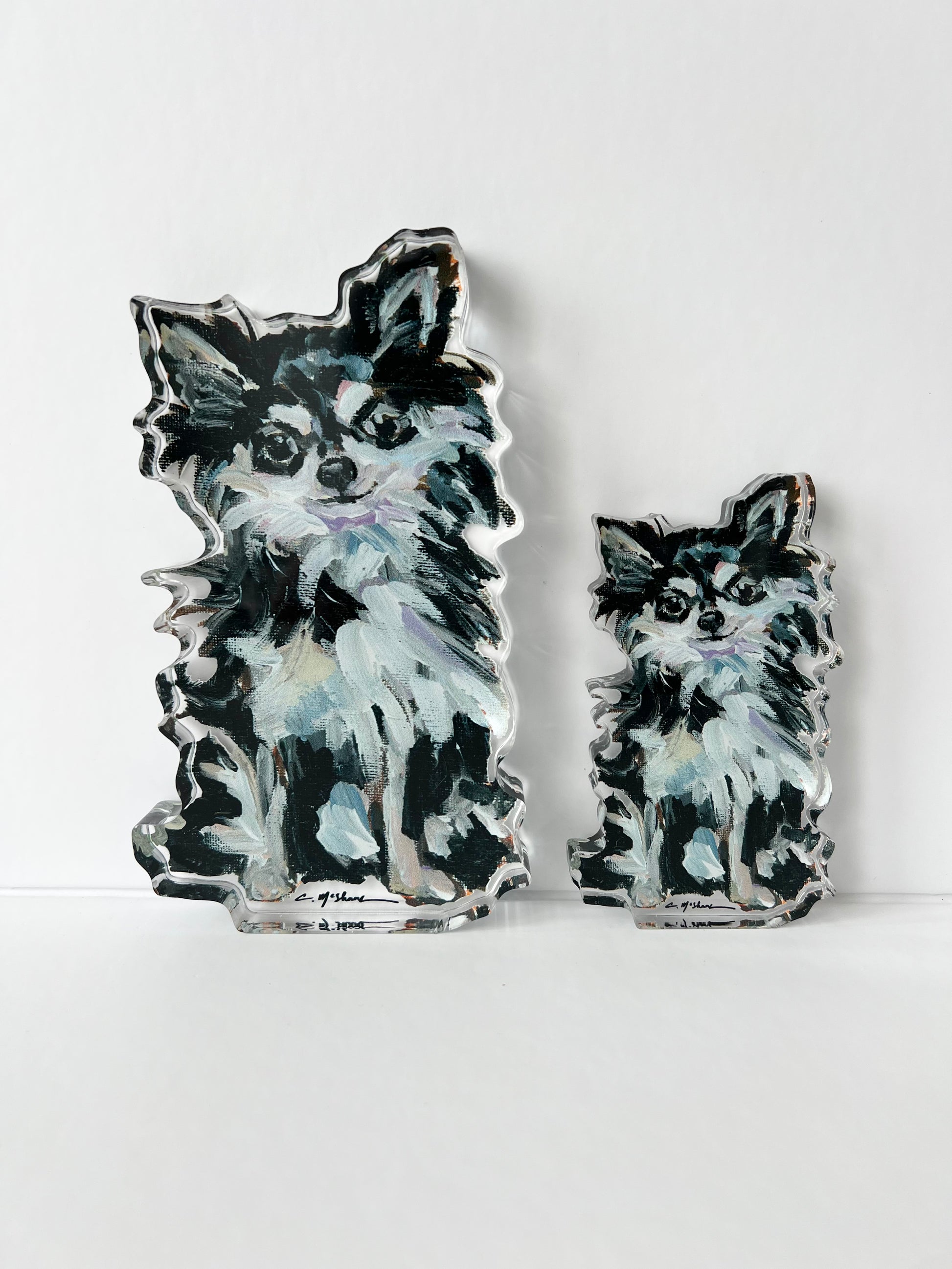 - All acrylic sizes vary depending on design. The larges range between 6X6 to 5X7, 3/4" thick. The minis are on average 2.5 X 4.5", 1/2" thick