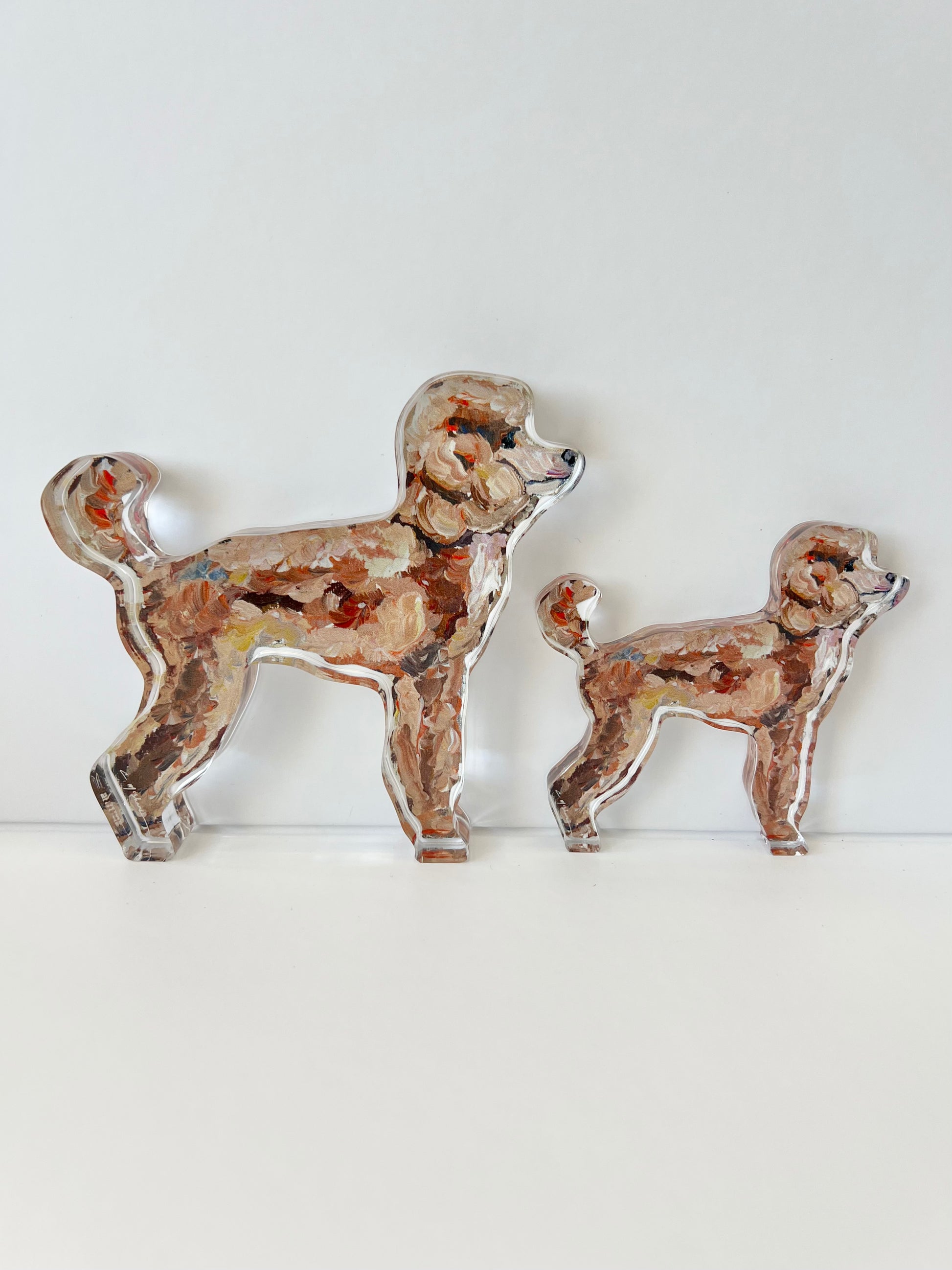 - All acrylic sizes vary depending on design. The larges range between 6X6 to 3X7, 3/4" thick. The minis are on average 2.5 X 4.5", 1/2" thick