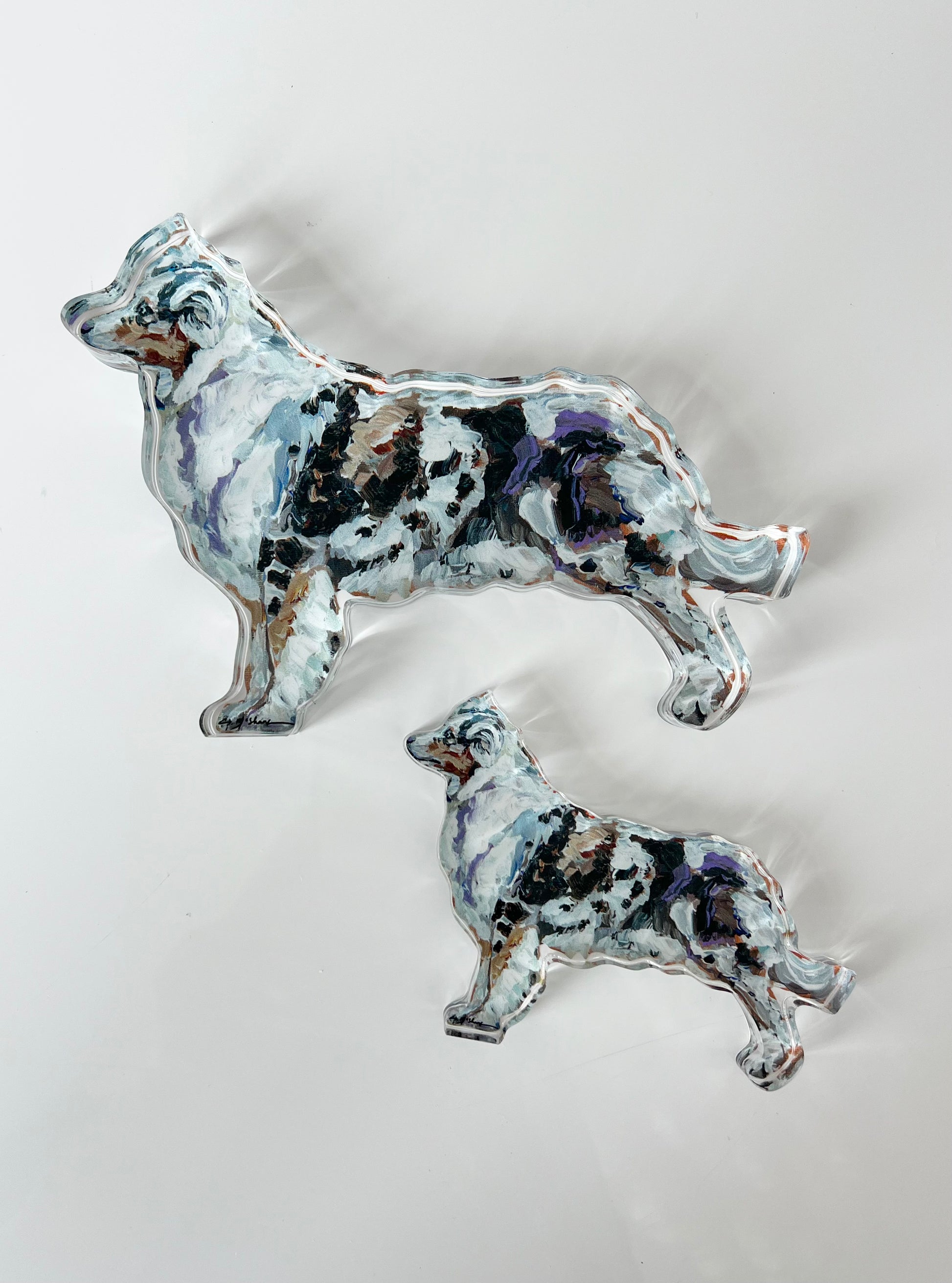 - All acrylic sizes vary depending on design. The larges range between 6X6 to 5X7, 3/4" thick. The minis are on average 2.5 X 4.5", 1/2" thick