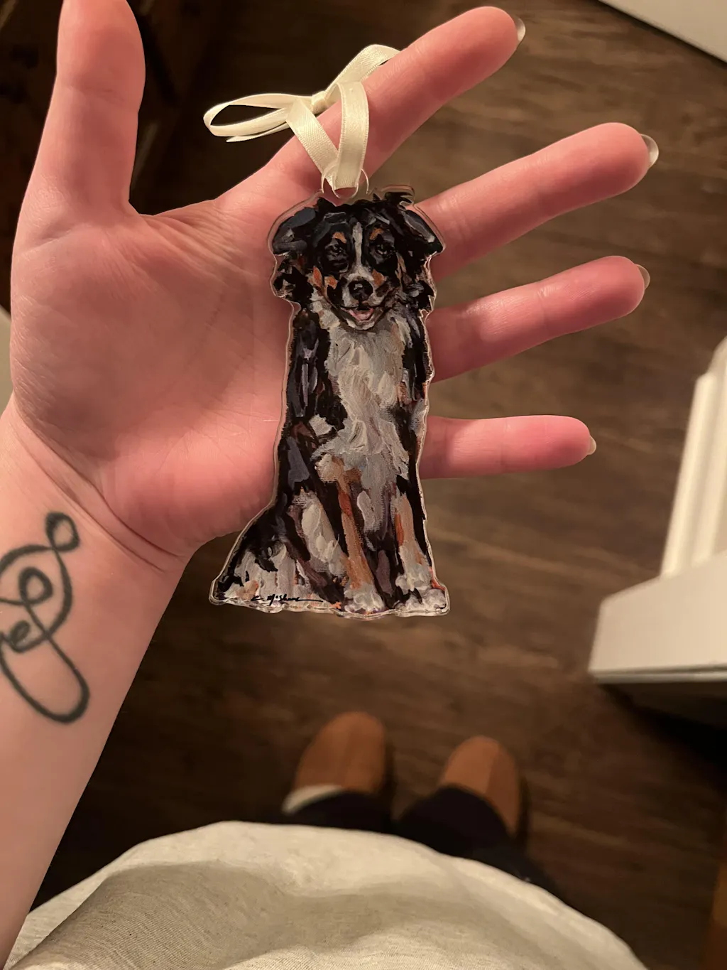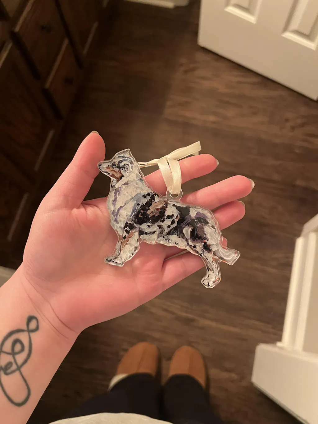 Becky M Both Australian shepherd ornaments were just as pictured from the website, nice size and quality! So happy with them!