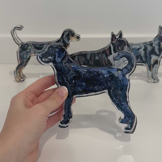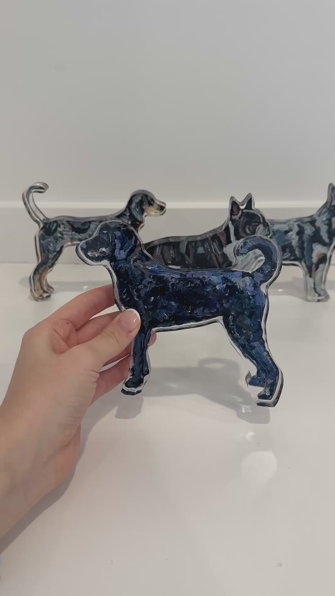 - All acrylic sizes vary depending on design. The larges range between 6X6 to 5X7, 3/4" thick. The minis are on average 2.5 X 4.5", 1/2" thick