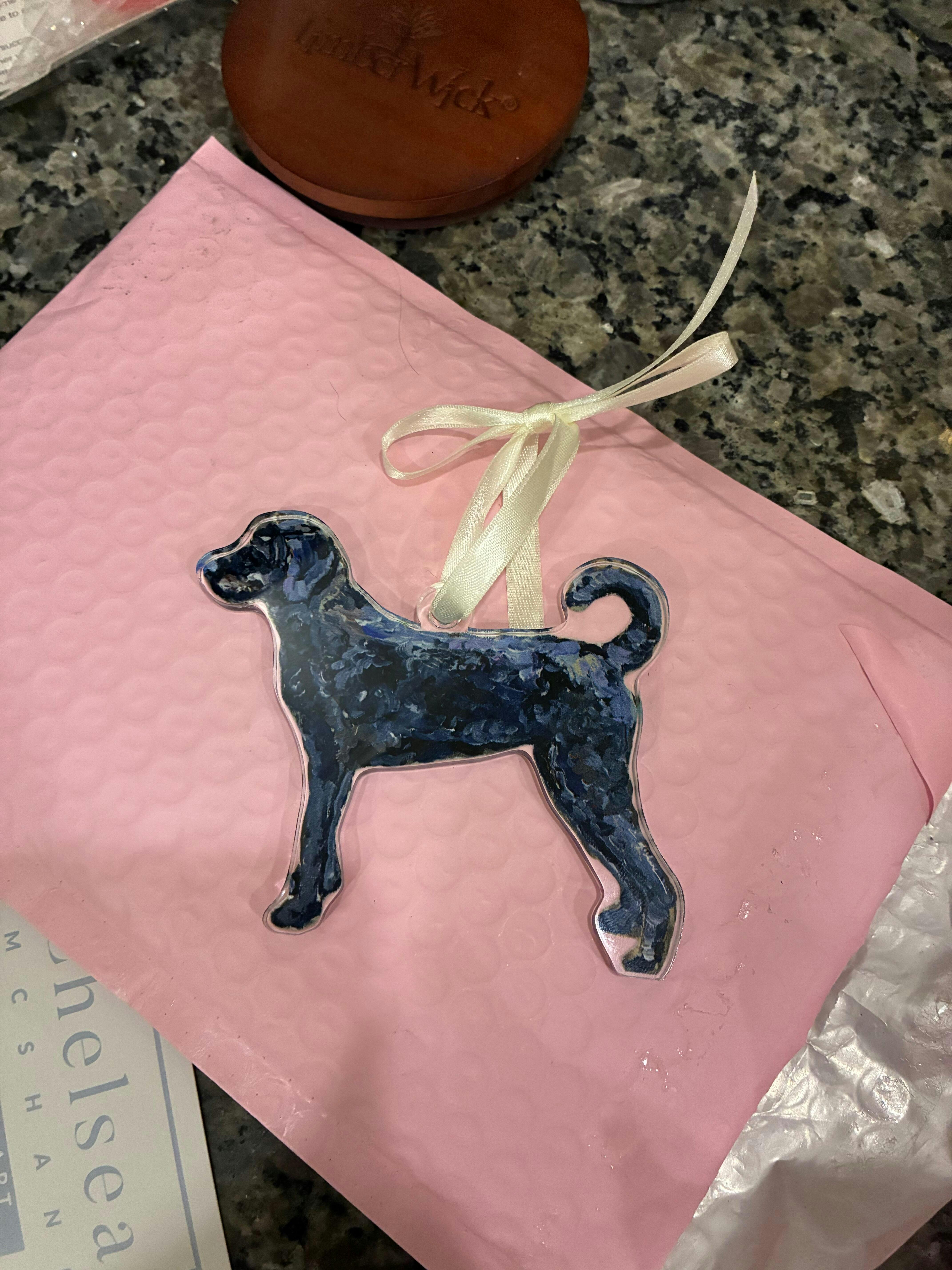 Hadley Burroughs This is a must for any dog lover, pet parent and dog obsessed enthusiast. This artwork and vision of some of the most beloved breeds to represent important members of the family on the Christmas tree adds an elegance to any holiday decor. This looks just like my Lucy and will be one of many memories for years to come of our furbaby!