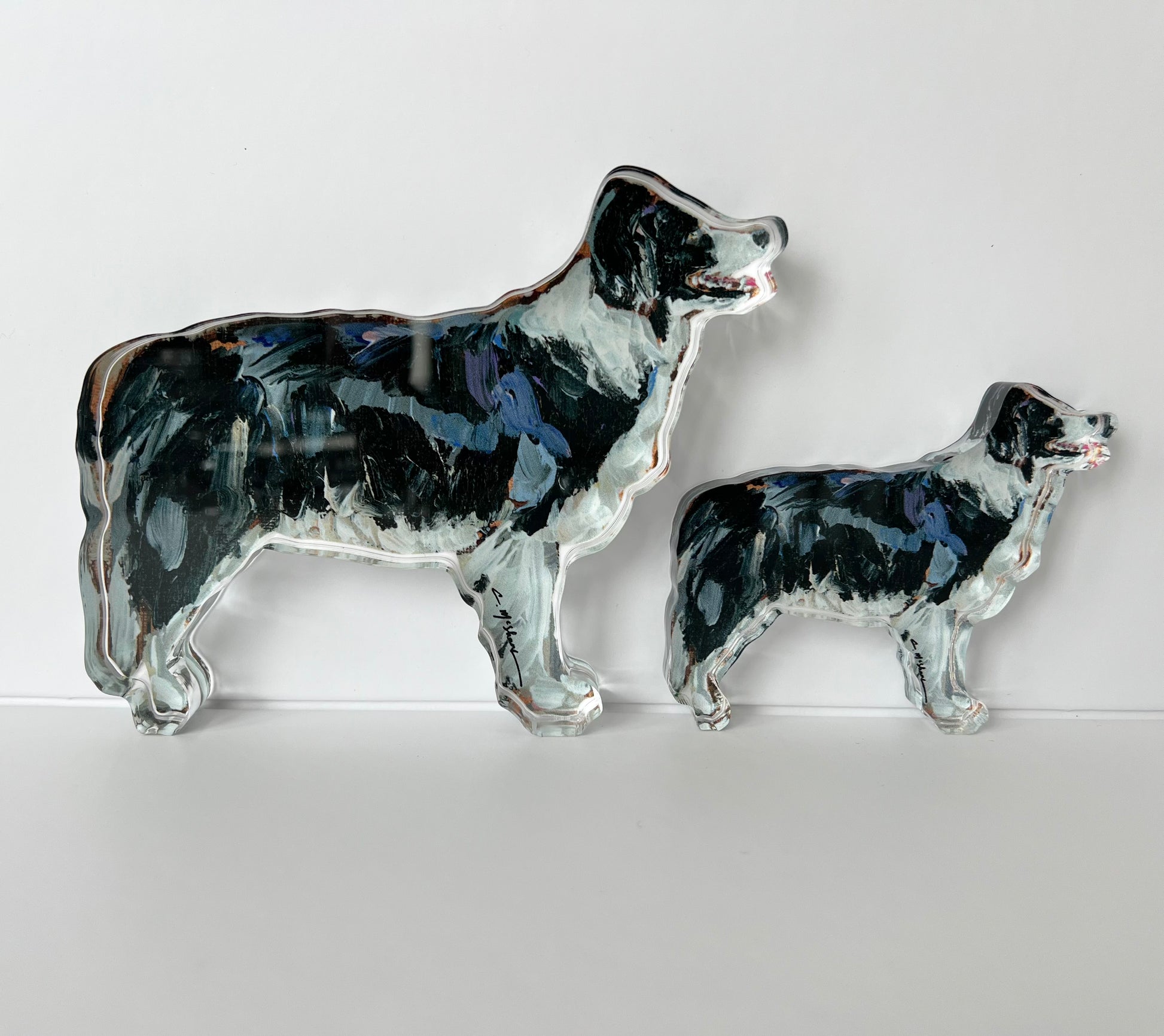 - All acrylic sizes vary depending on design. The larges range between 6X6 to 5X7, 3/4" thick. The minis are on average 2.5 X 4.5", 1/2" thick