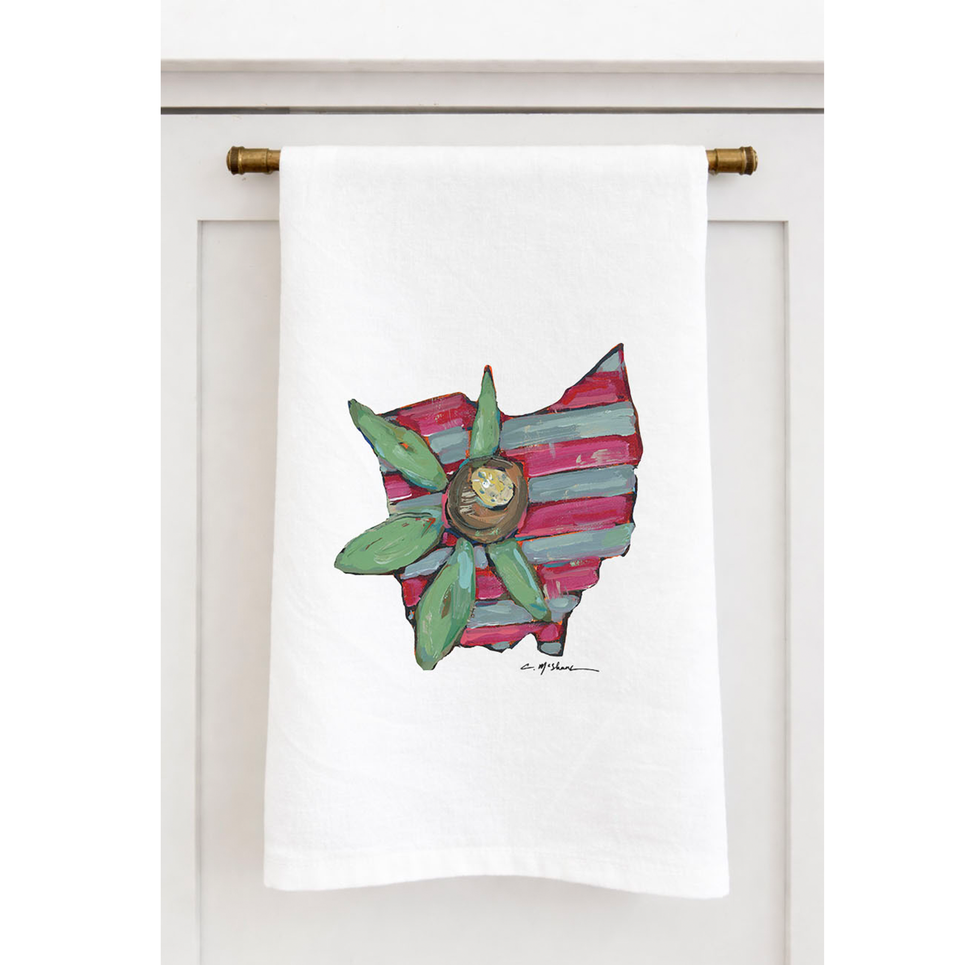 Chelsea McShane branded print with hook loop at one corner of tea towel