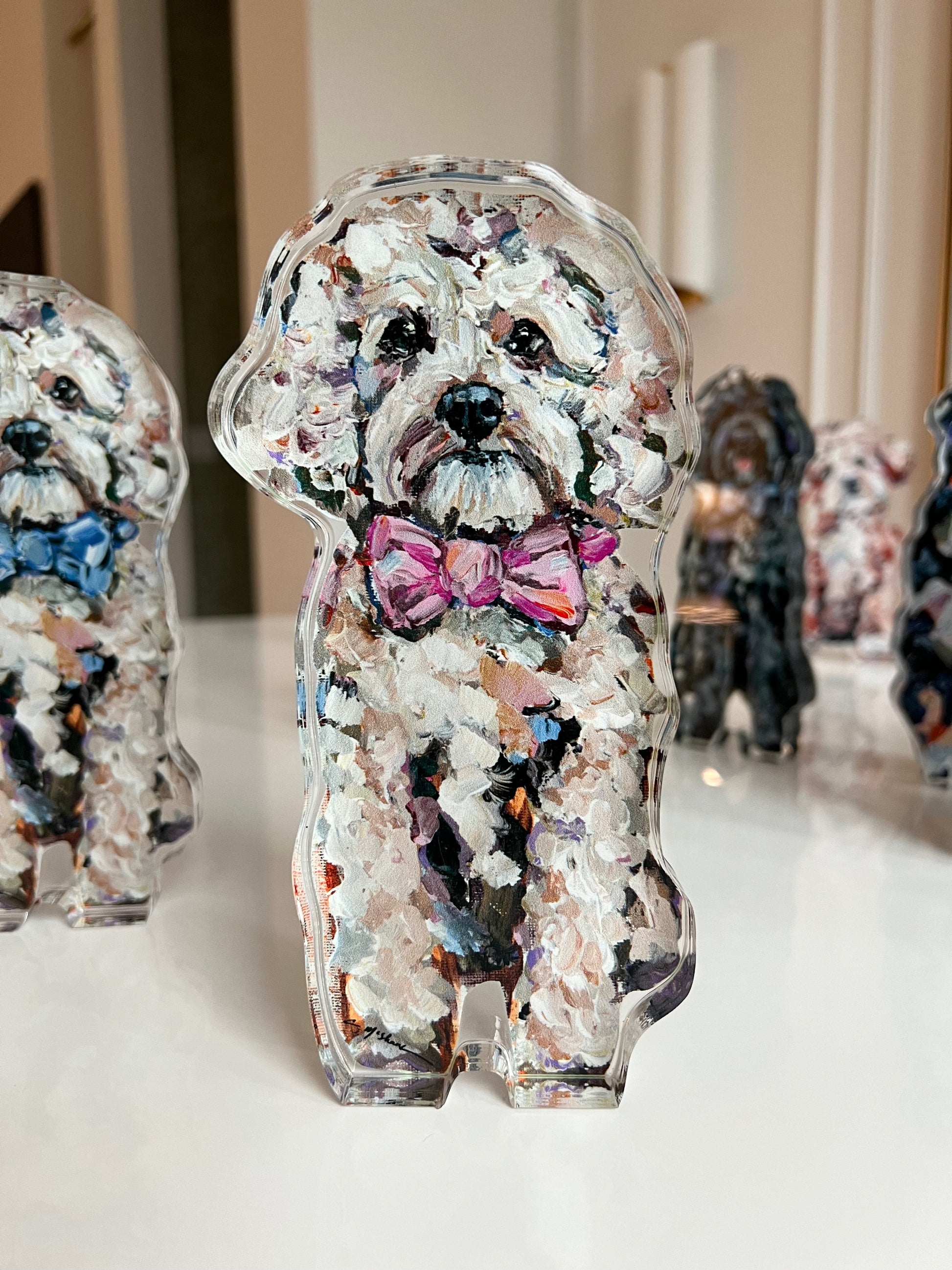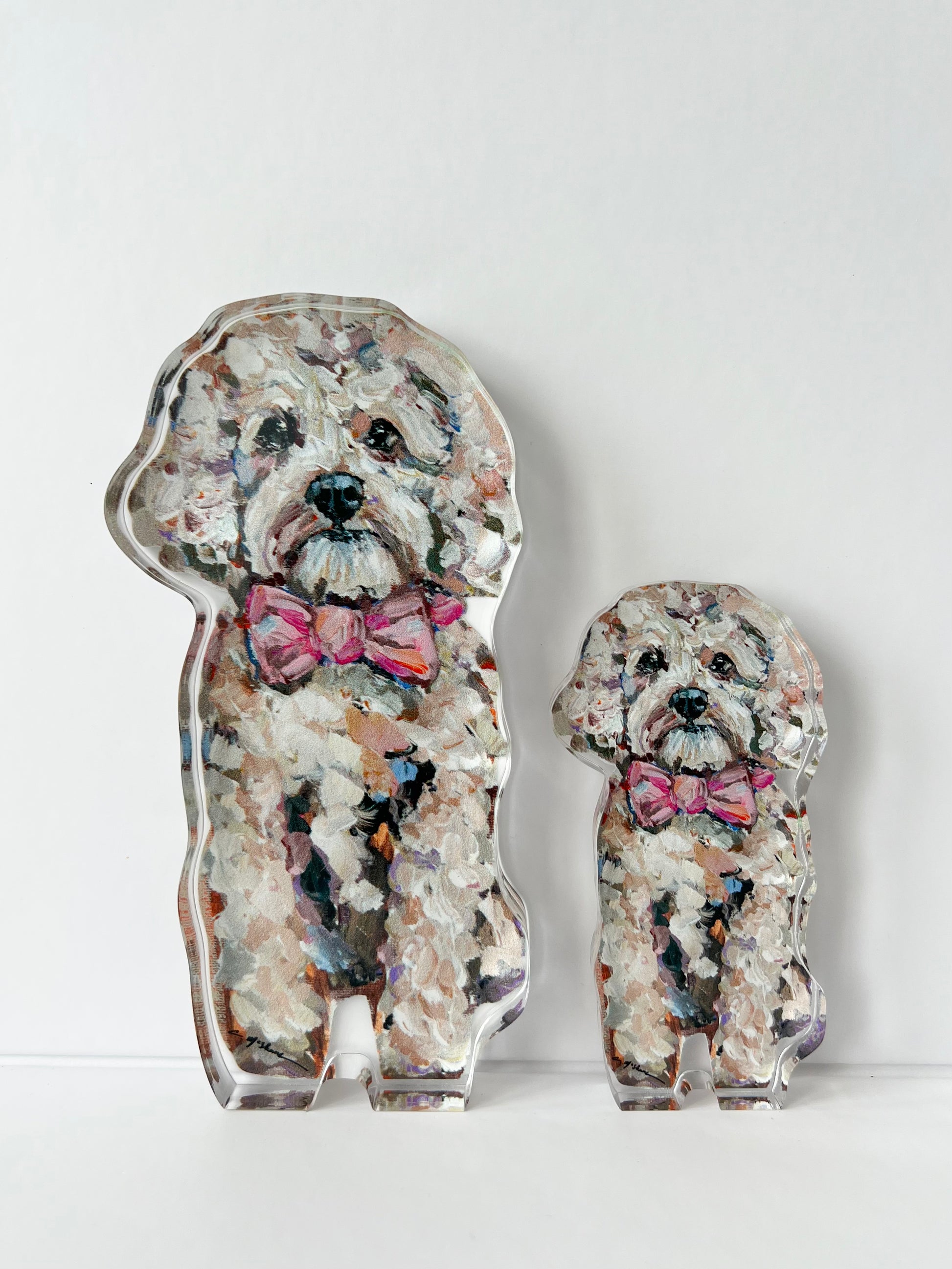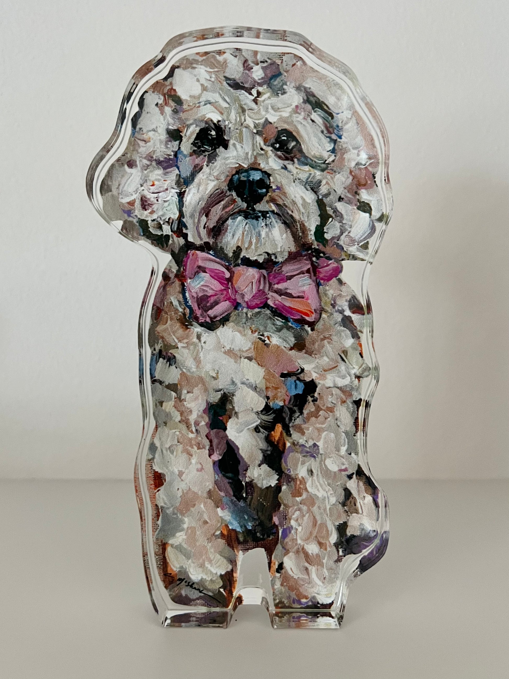 Sara Riso I absolutely adore the acrylic shelfie! Looks just like my sweet Evie. Shipping was fast, packaging was thoughtful and the product is adorable. I absolute love it!