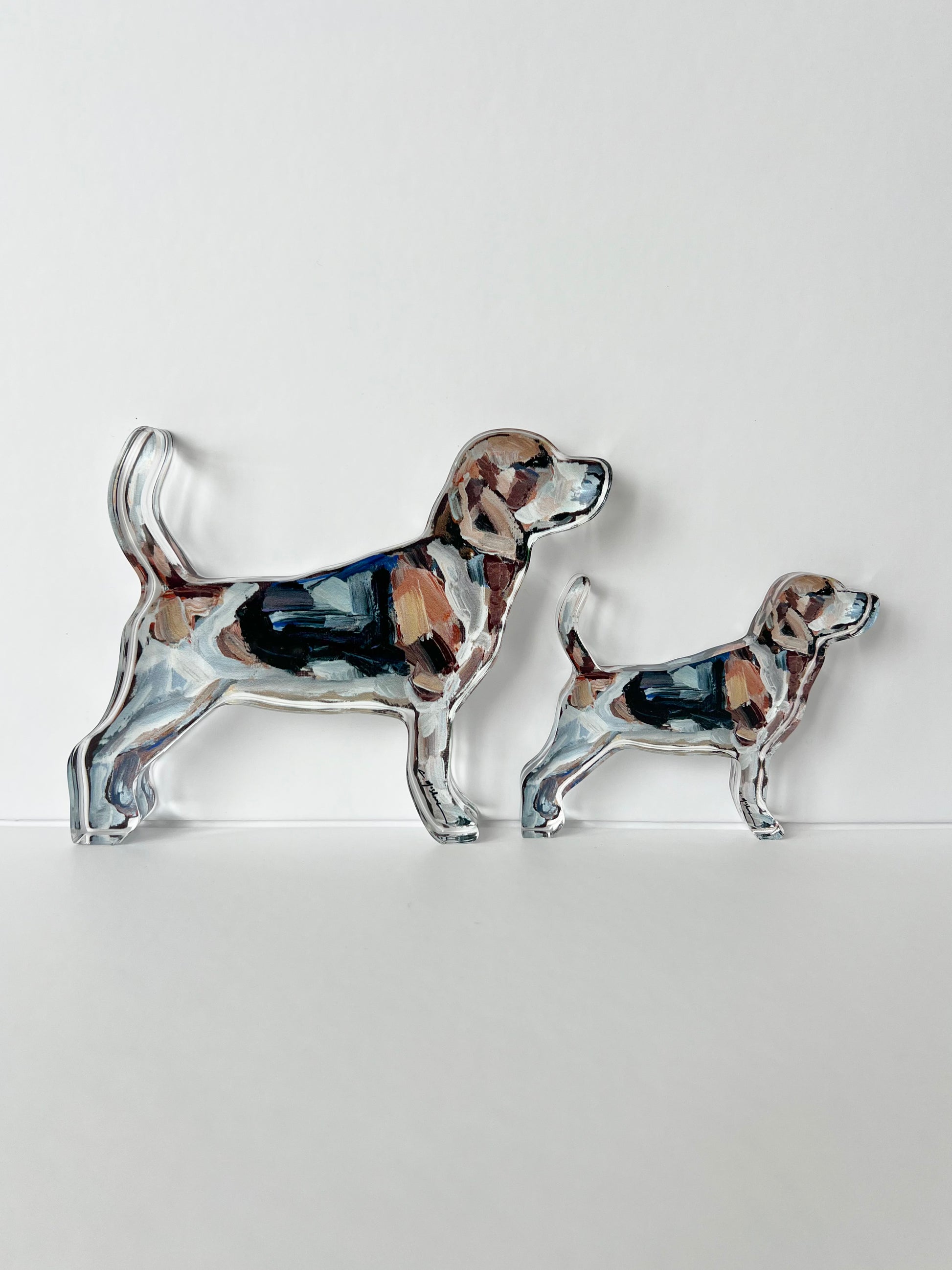 - All acrylic sizes vary depending on design. The larges range between 6X6 to 5X7, 3/4" thick. The minis are on average 2.5 X 4.5", 1/2" thick