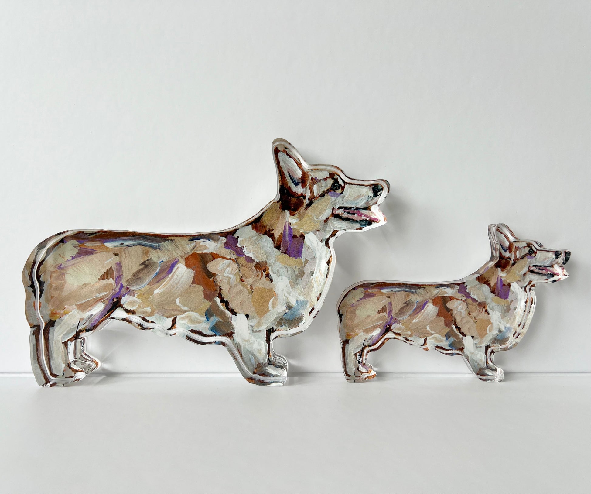 - All acrylic sizes vary depending on design. The larges range between 6X6 to 5X7, 3/4" thick. The minis are on average 2.5 X 4.5", 1/2" thick