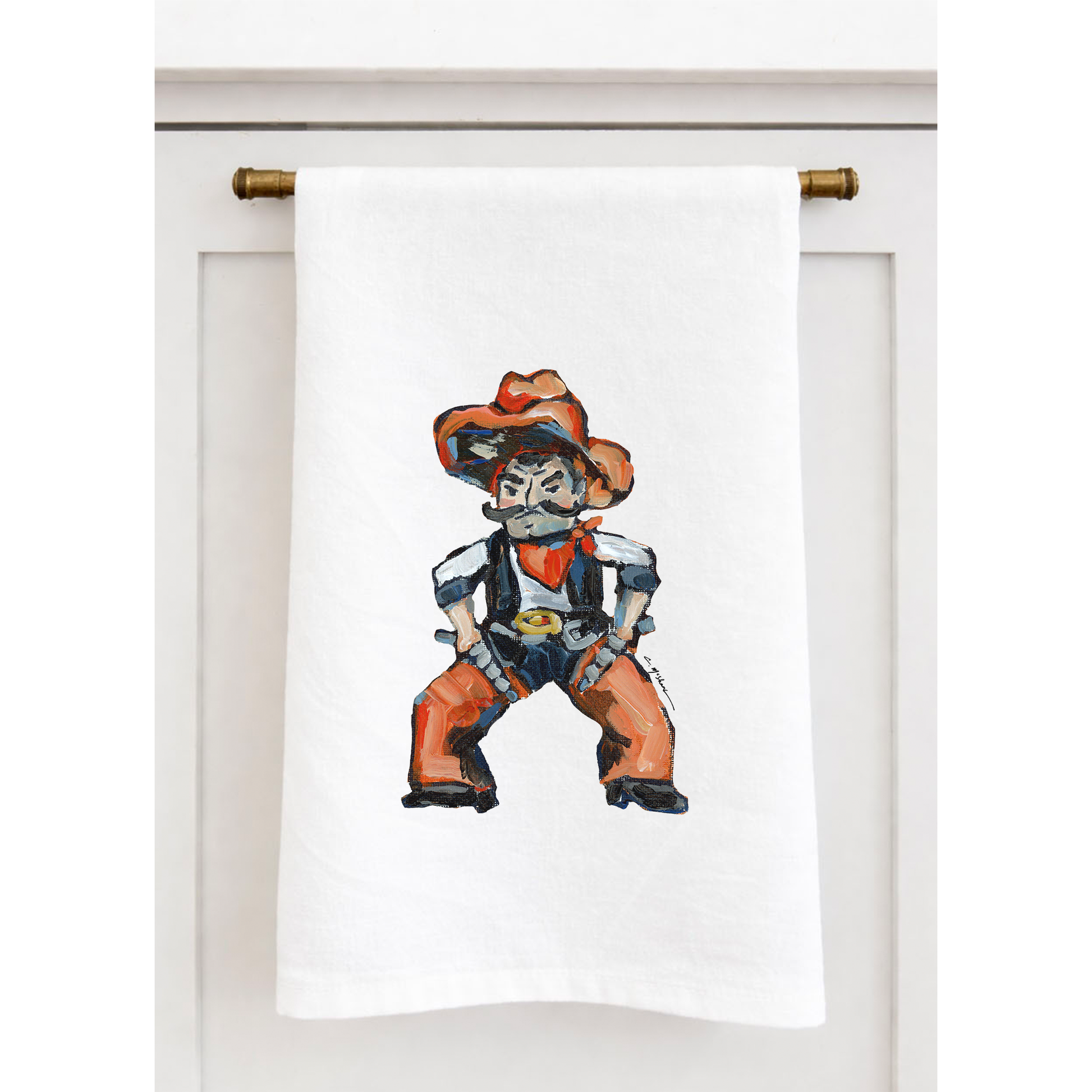 Chelsea McShane branded print with hook loop at one corner of tea towel