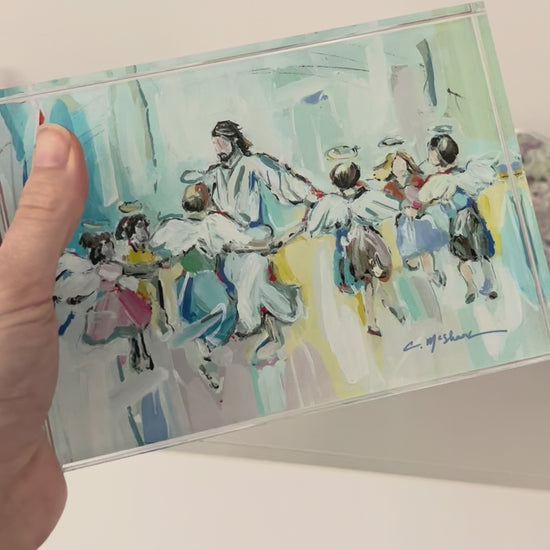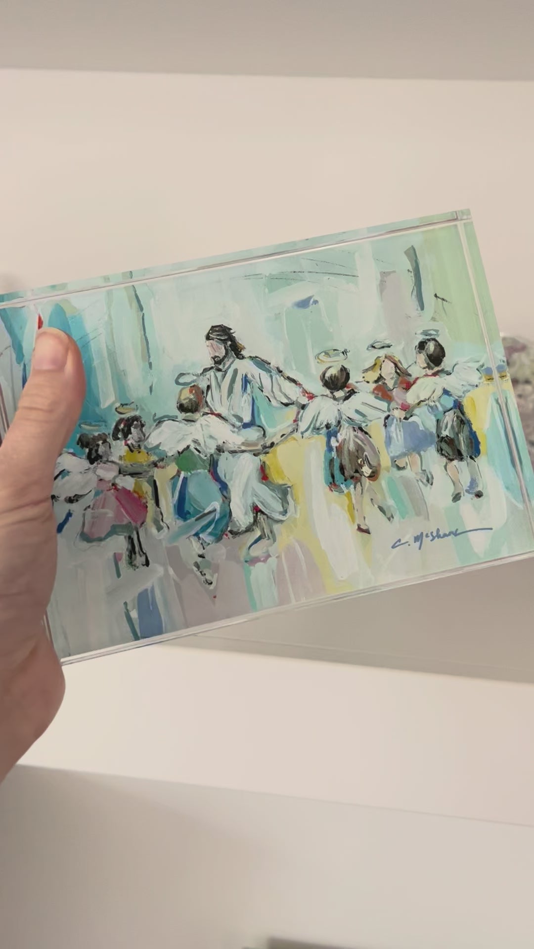 - The art is affixed to a thick, weighted protective acrylic block giving a three dimensional appearance