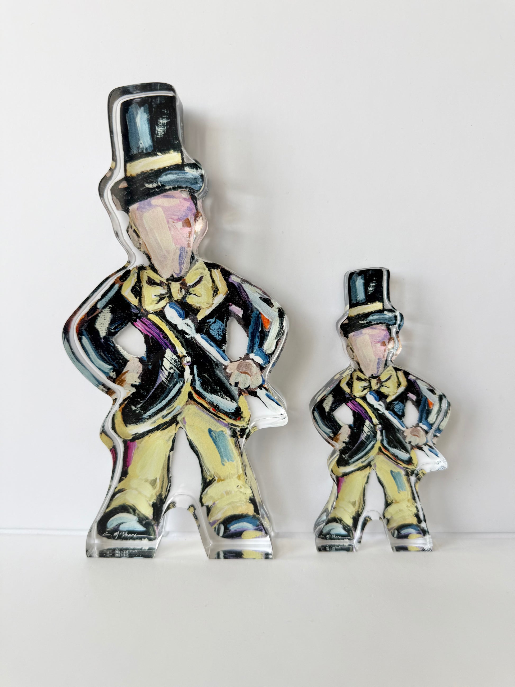 - All acrylic sizes vary depending on design. The larges range between 6X6 to 3X7, 3/4" thick. The minis are on average 2.5 X 4.5", 1/2" thick