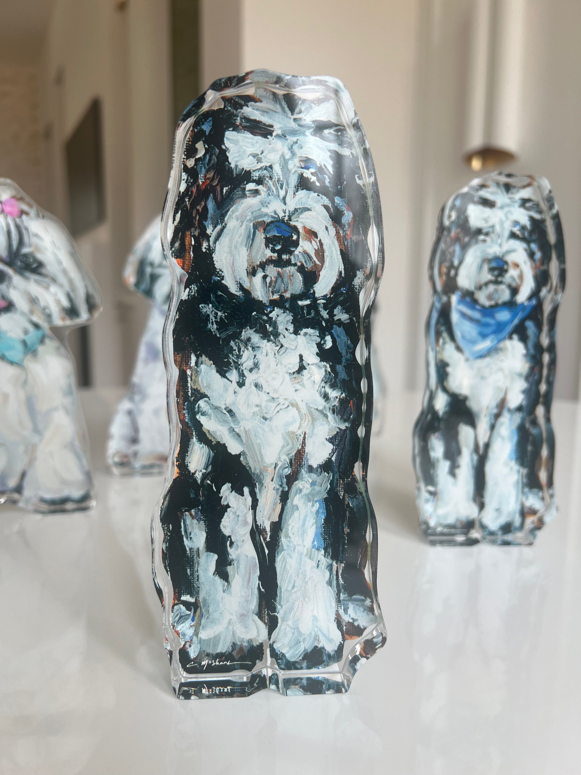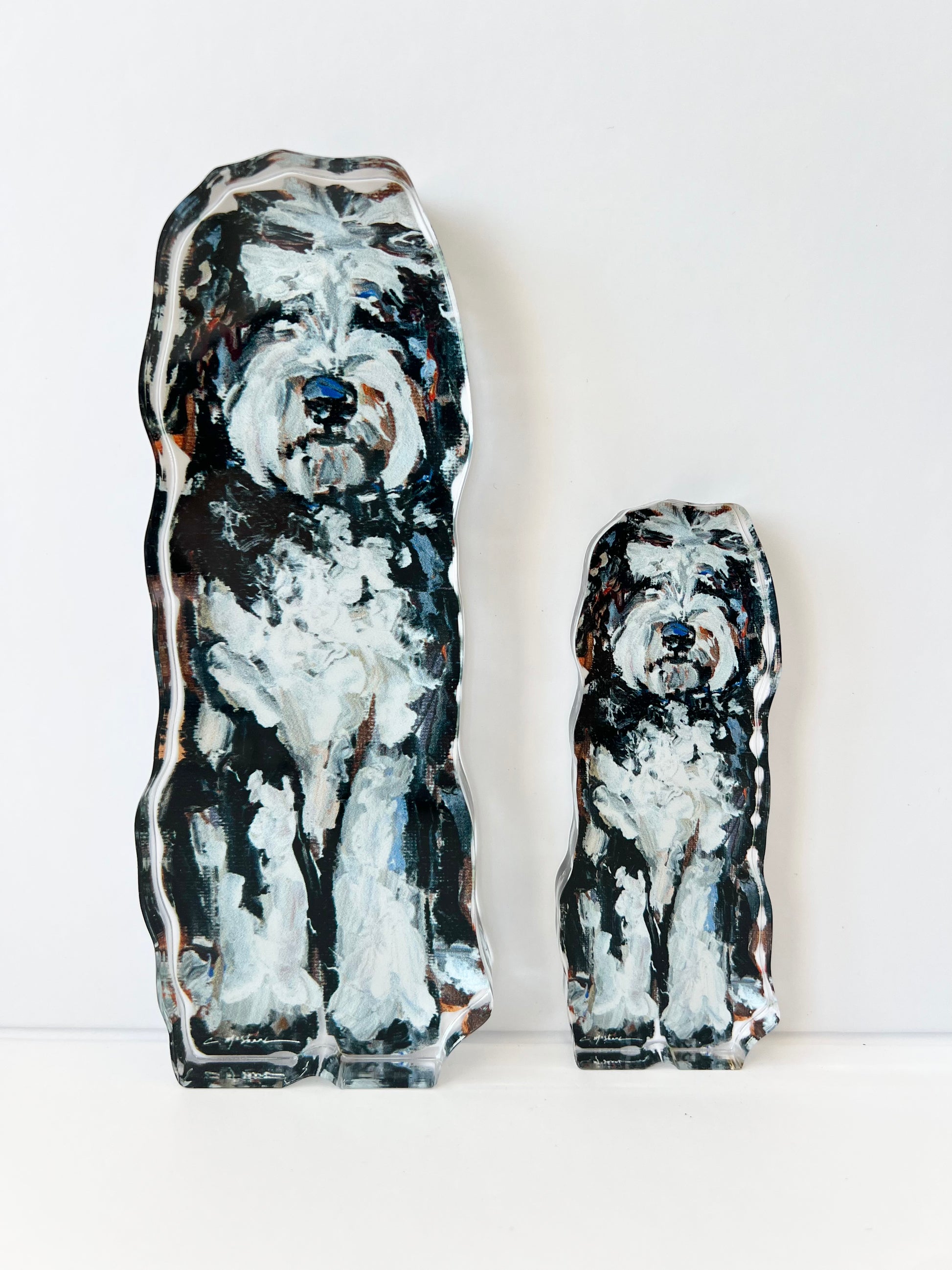 - All acrylic sizes vary depending on design. The larges range between 6X6 to 5X7, 3/4" thick. The minis are on average 2.5 X 4.5", 1/2" thick