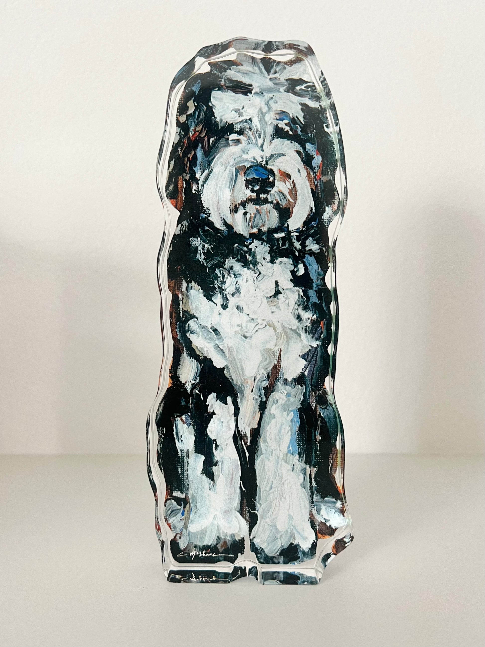 - The art is affixed to a thick, weighted protective acrylic block giving a three dimensional appearance