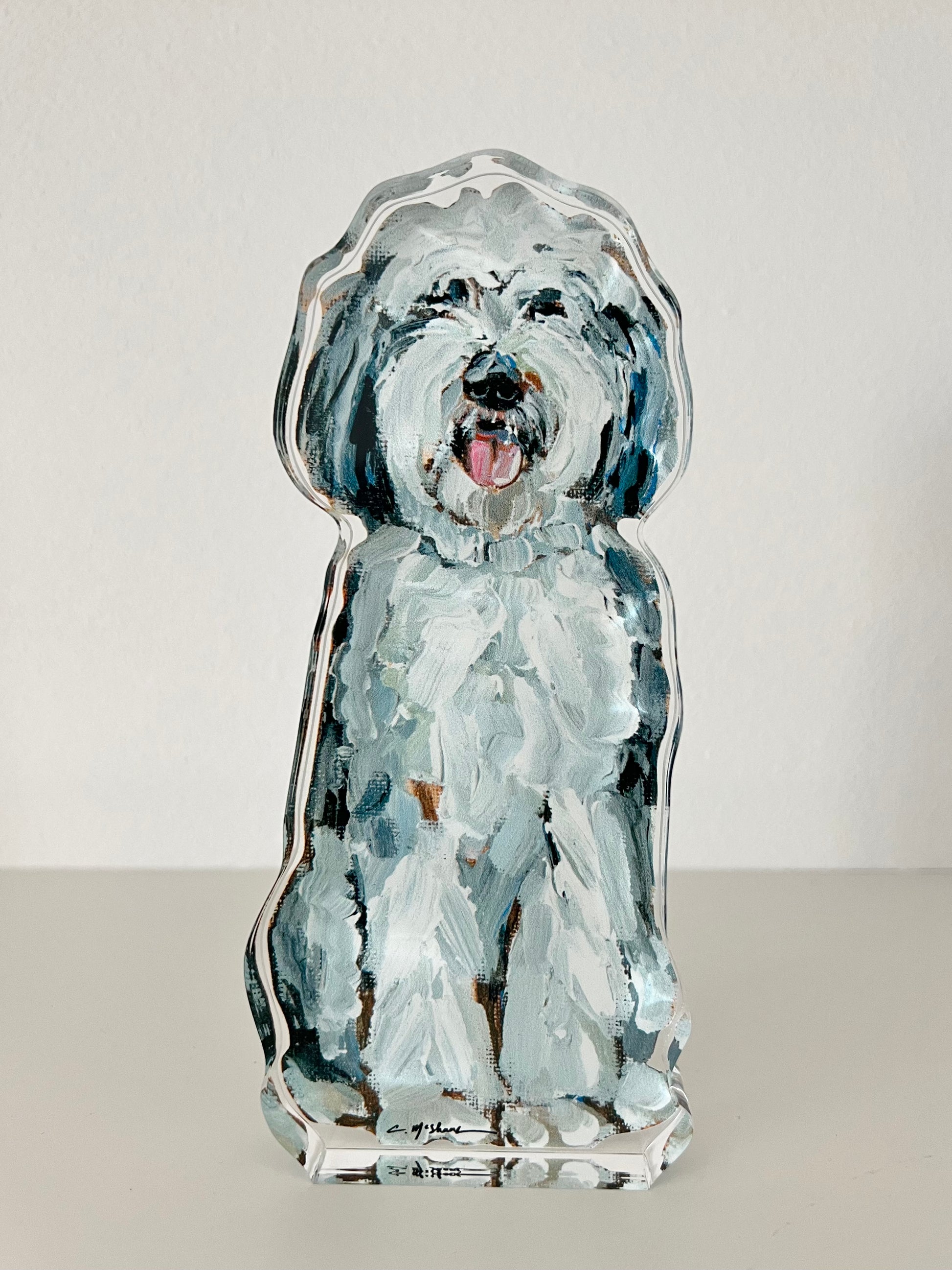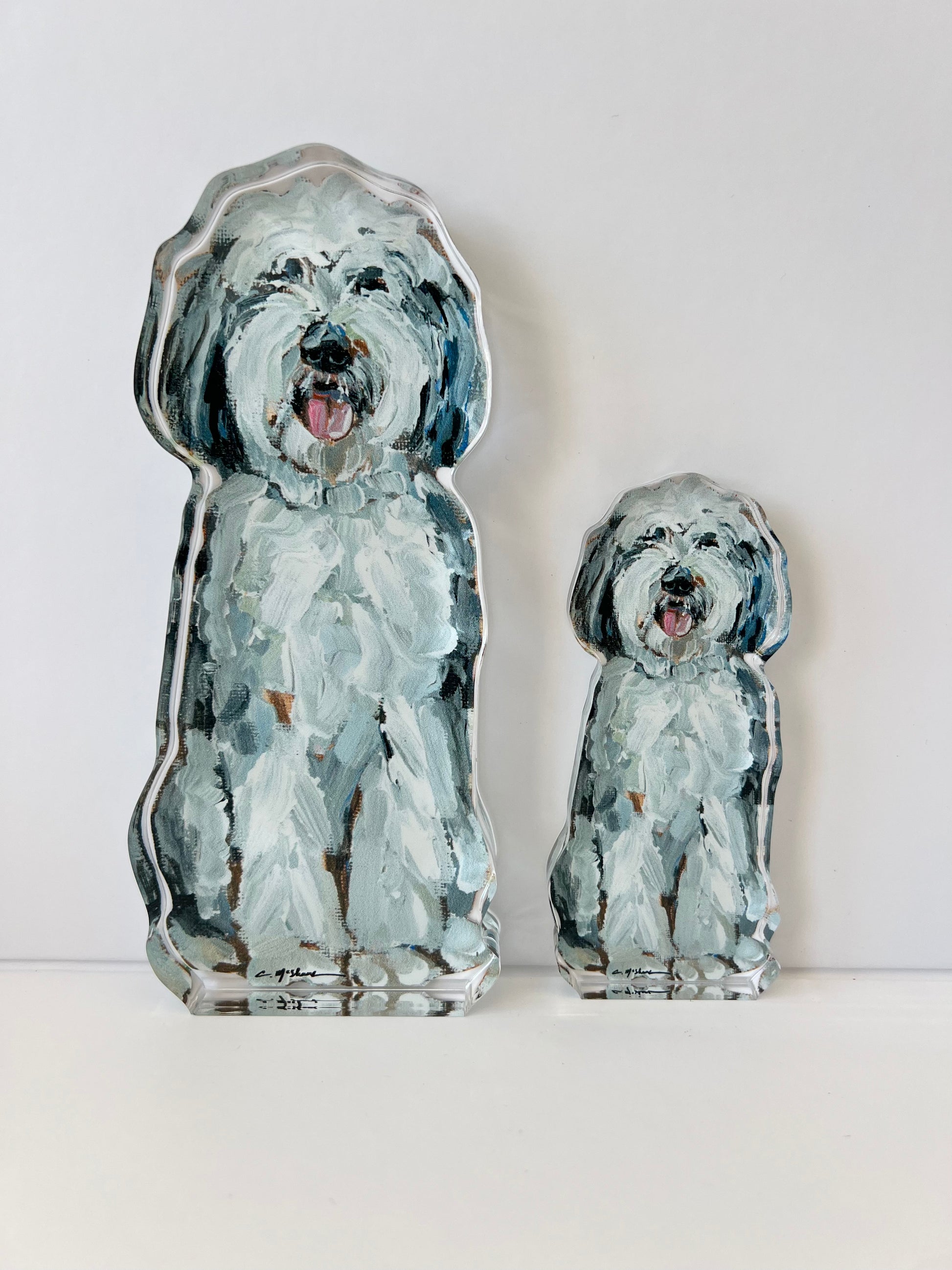 - All acrylic sizes vary depending on design. The larges range between 6X6 to 5X7, 3/4" thick. The minis are on average 2.5 X 4.5", 1/2" thick