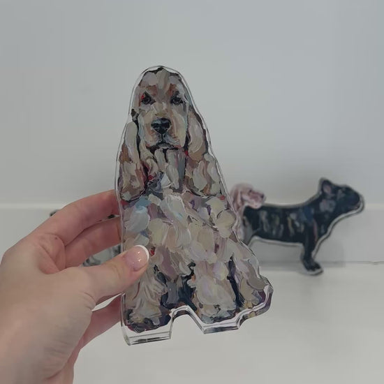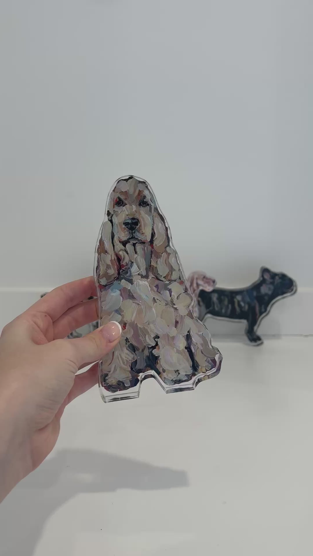 - All acrylic sizes vary depending on design. The larges range between 6X6 to 5X7, 3/4" thick. The minis are on average 2.5 X 4.5", 1/2" thick