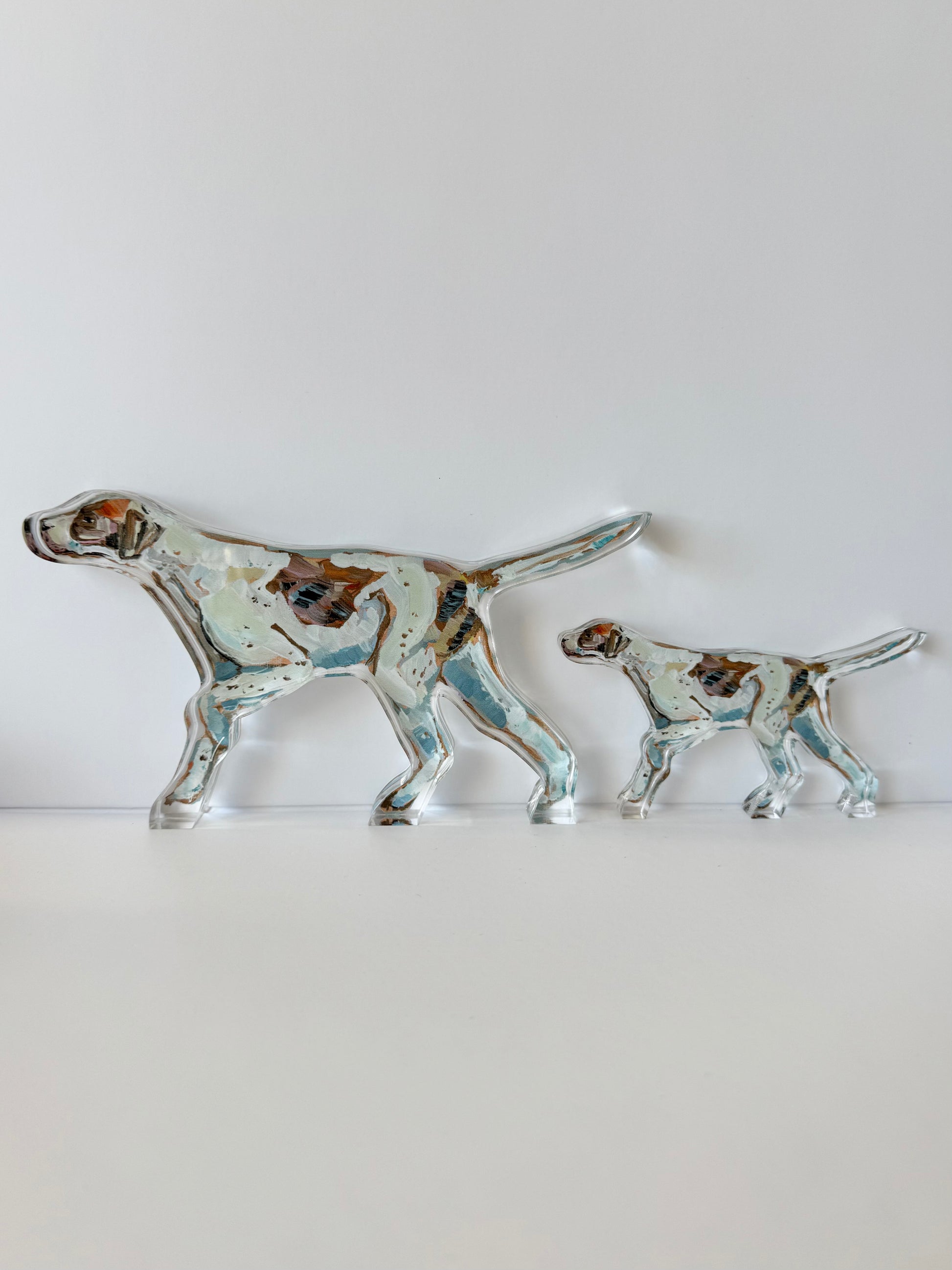 - All acrylic sizes vary depending on design. The larges range between 6X6 to 5X7, 3/4" thick. The minis are on average 2.5 X 4.5", 1/2" thick