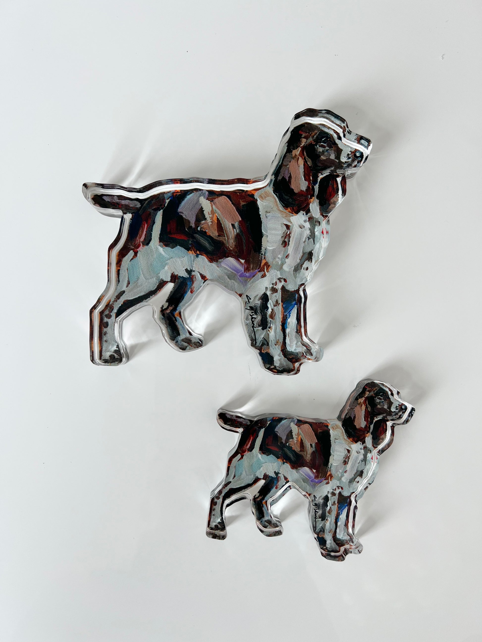 - All acrylic sizes vary depending on design. The larges range between 6X6 to 5X7, 3/4" thick. The minis are on average 2.5 X 4.5", 1/2" thick