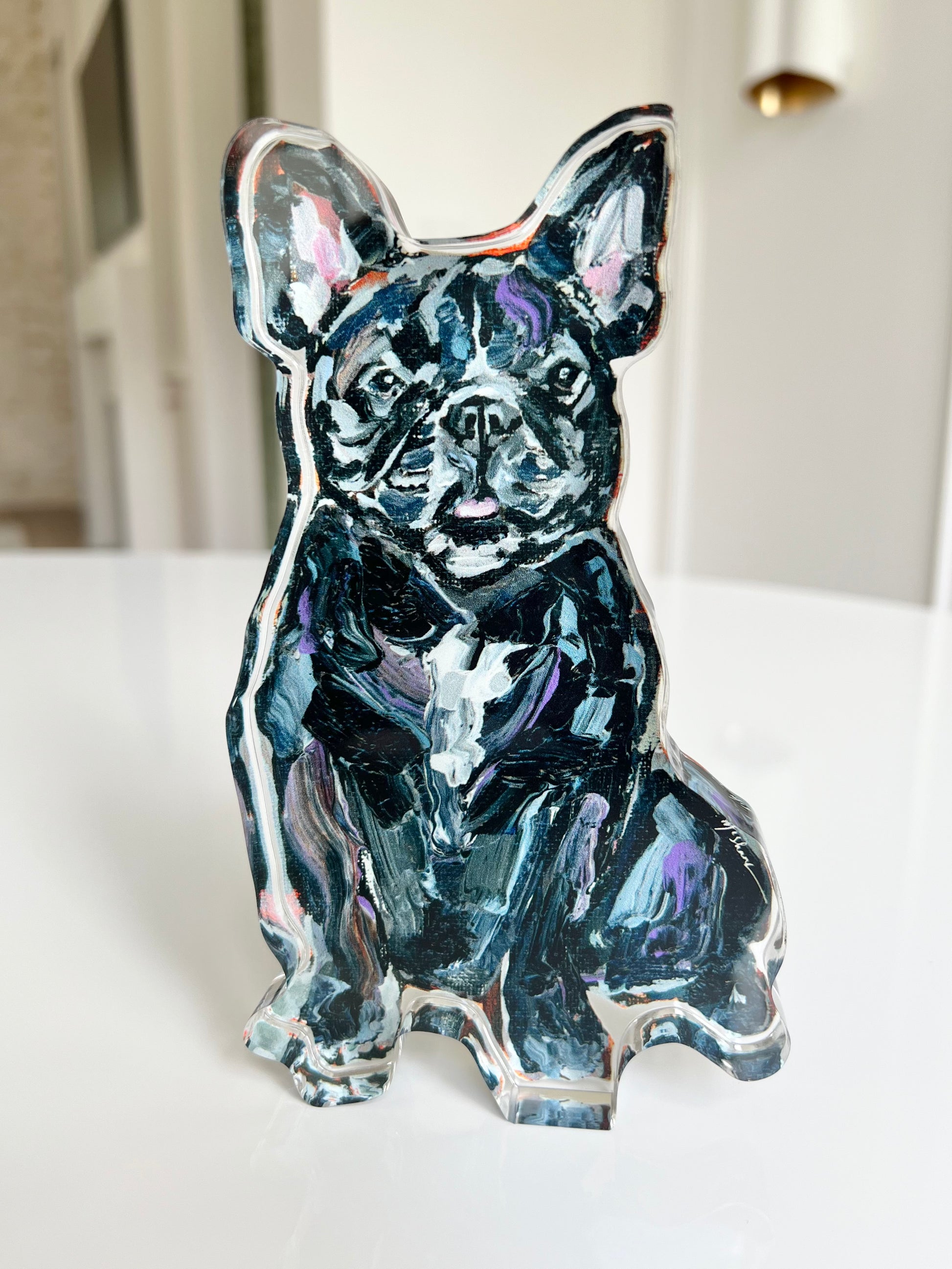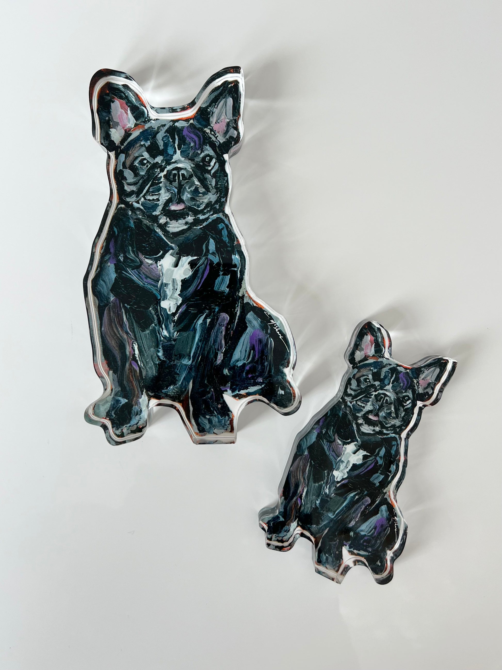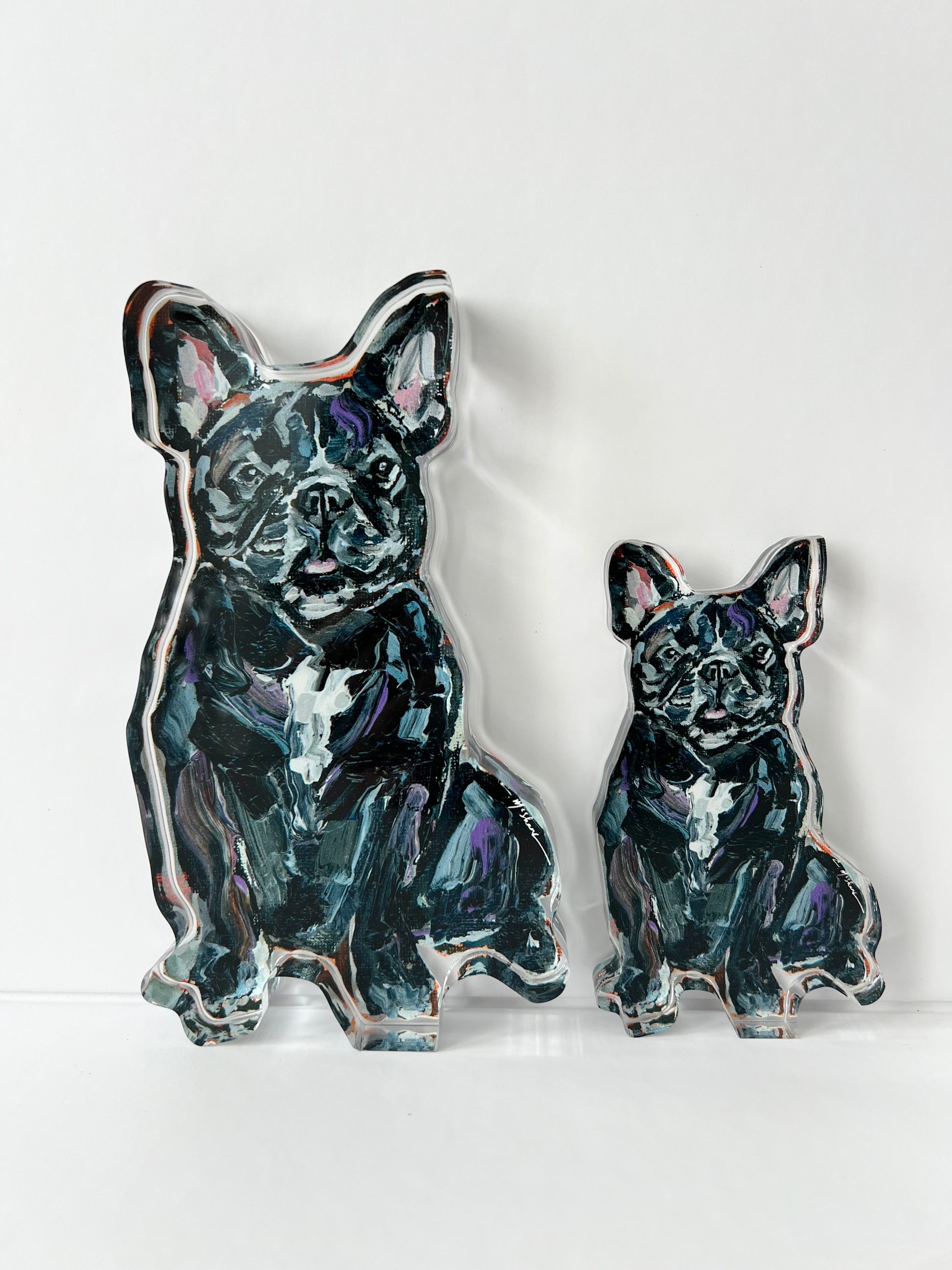 - All acrylic sizes vary depending on design. The larges range between 6X6 to 5X7, 3/4" thick. The minis are on average 2.5 X 4.5", 1/2" thick