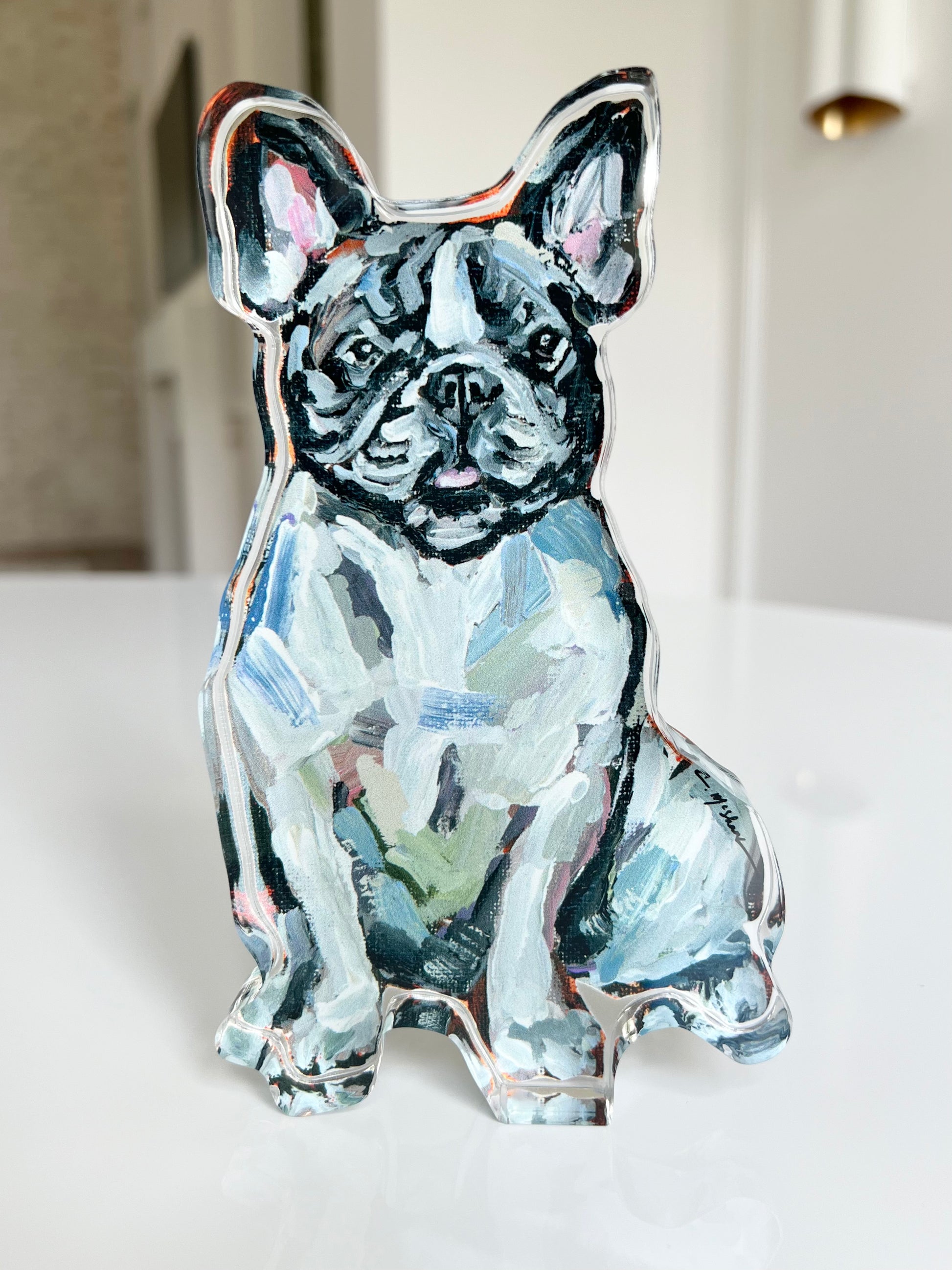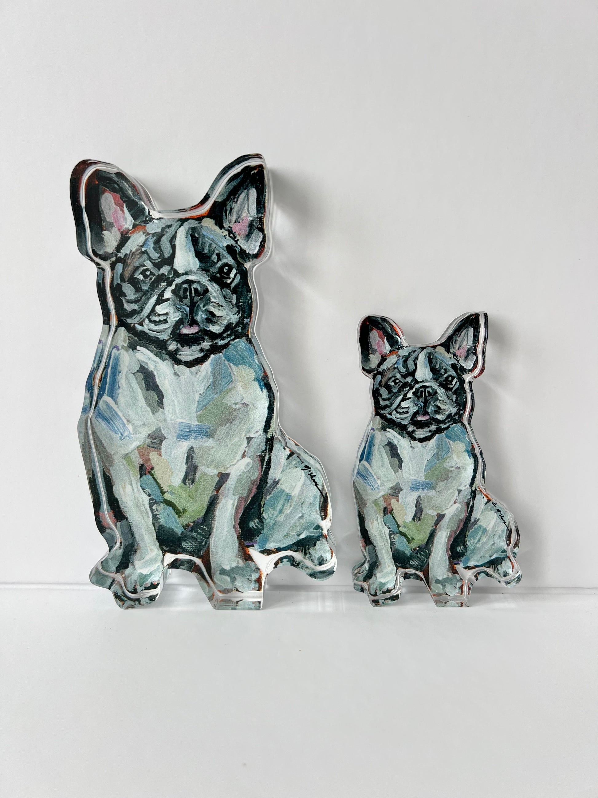 - All acrylic sizes vary depending on design. The larges range between 6X6 to 5X7, 3/4" thick. The minis are on average 2.5 X 4.5", 1/2" thick