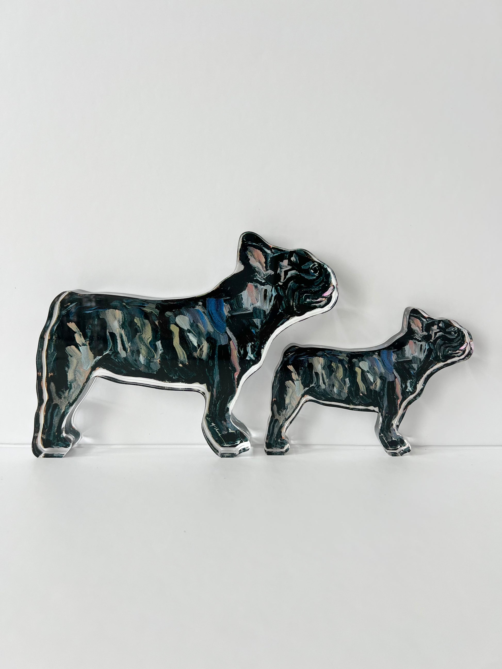 - All acrylic sizes vary depending on design. The larges range between 6X6 to 5X7, 3/4" thick. The minis are on average 2.5 X 4.5", 1/2" thick