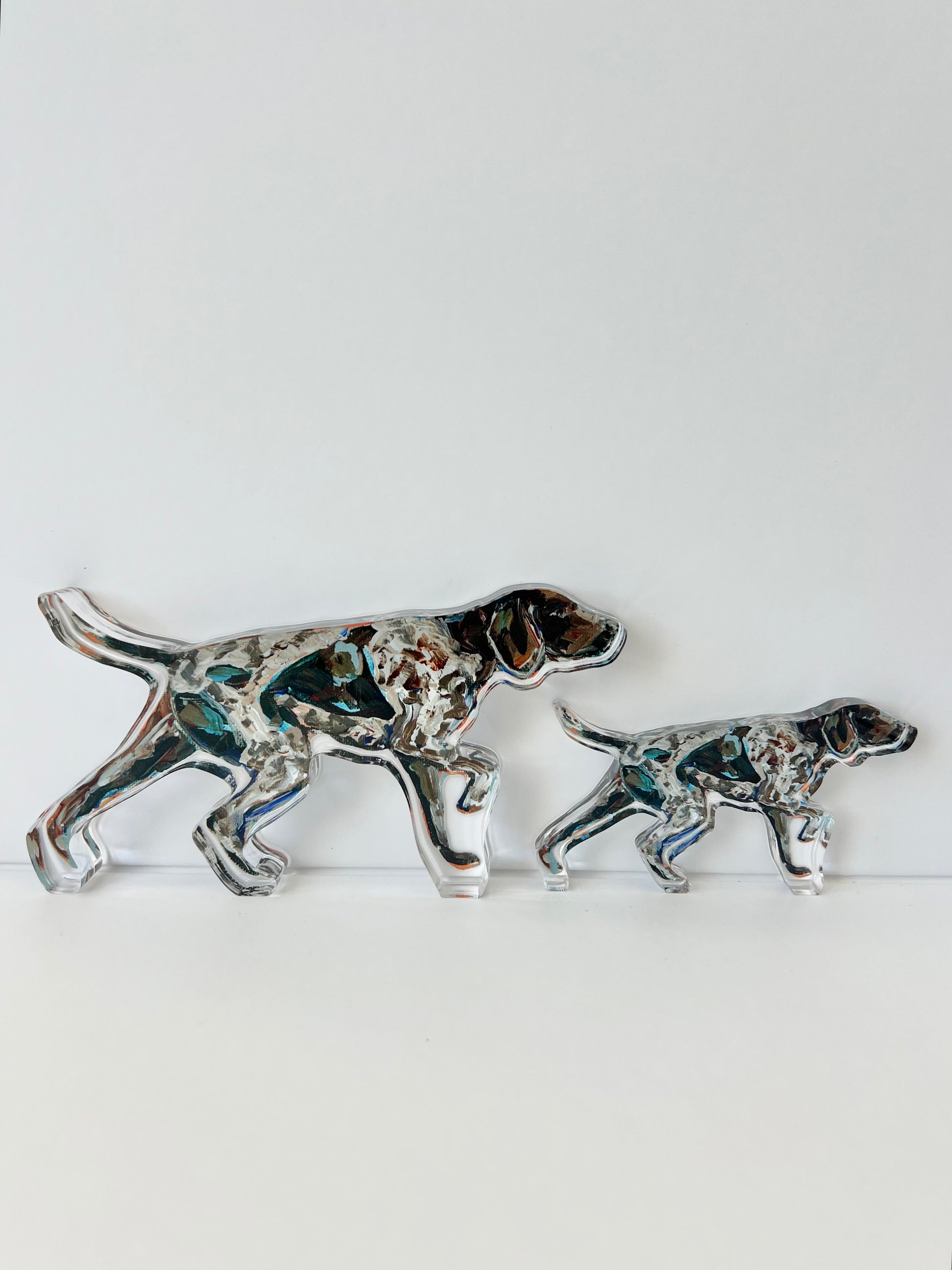 - All acrylic sizes vary depending on design. The larges range between 6X6 to 5X7, 3/4" thick. The minis are on average 2.5 X 4.5", 1/2" thick