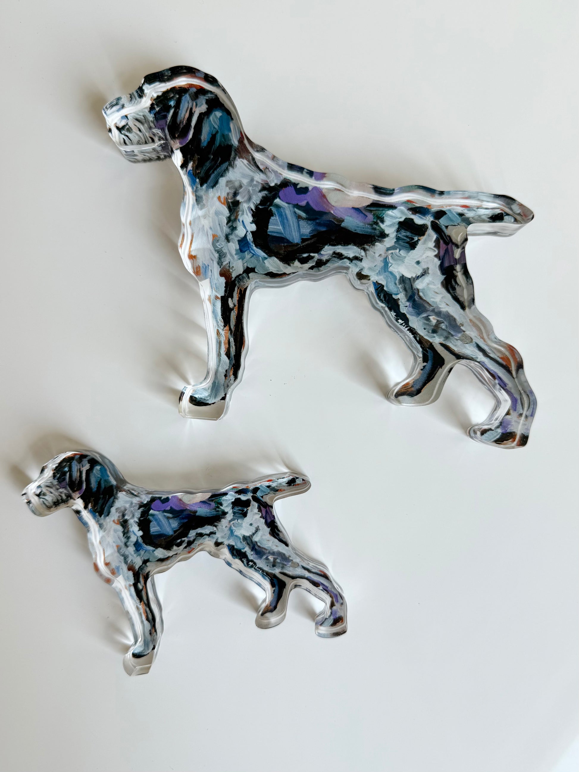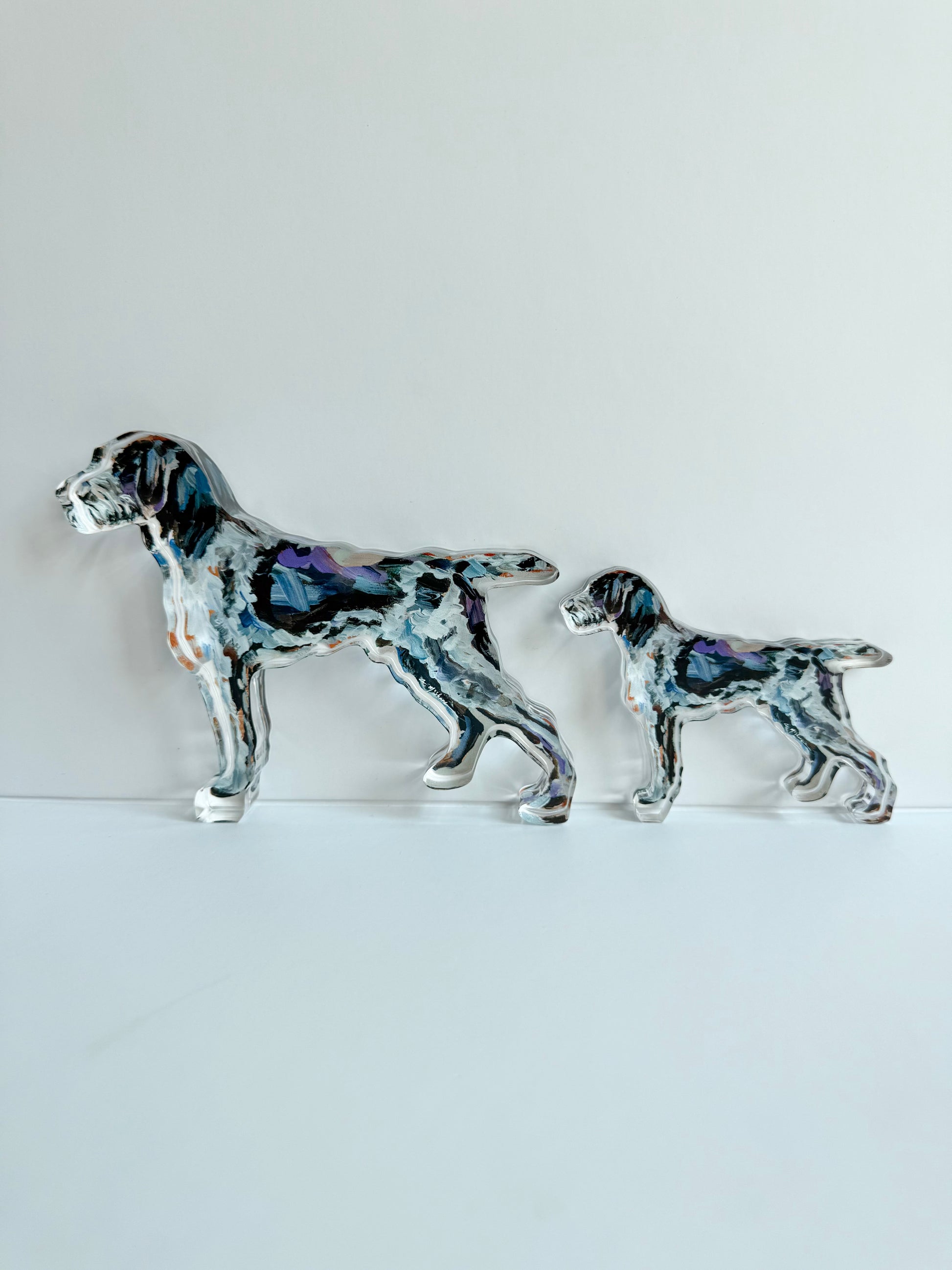 - All acrylic sizes vary depending on design. The larges range between 6X6 to 5X7, 3/4" thick. The minis are on average 2.5 X 4.5", 1/2" thick