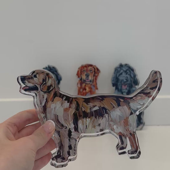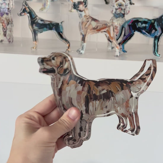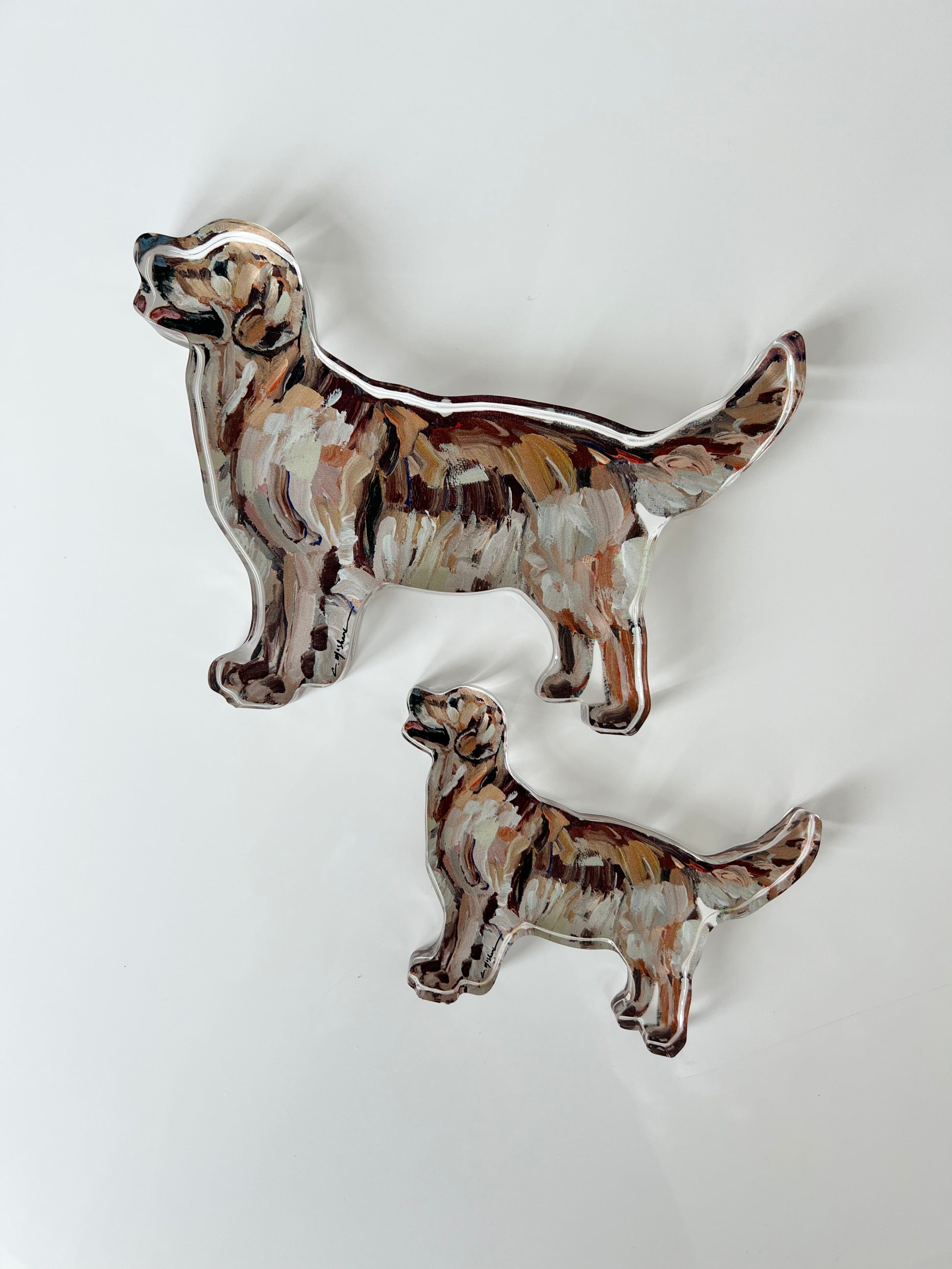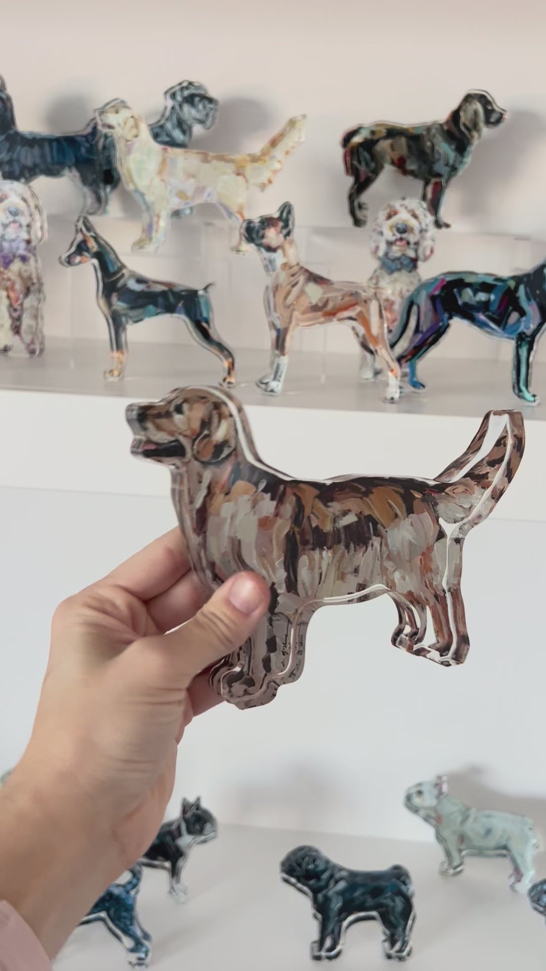 - All acrylic sizes vary depending on design. The larges range between 6X6 to 5X7, 3/4" thick. The minis are on average 2.5 X 4.5", 1/2" thick