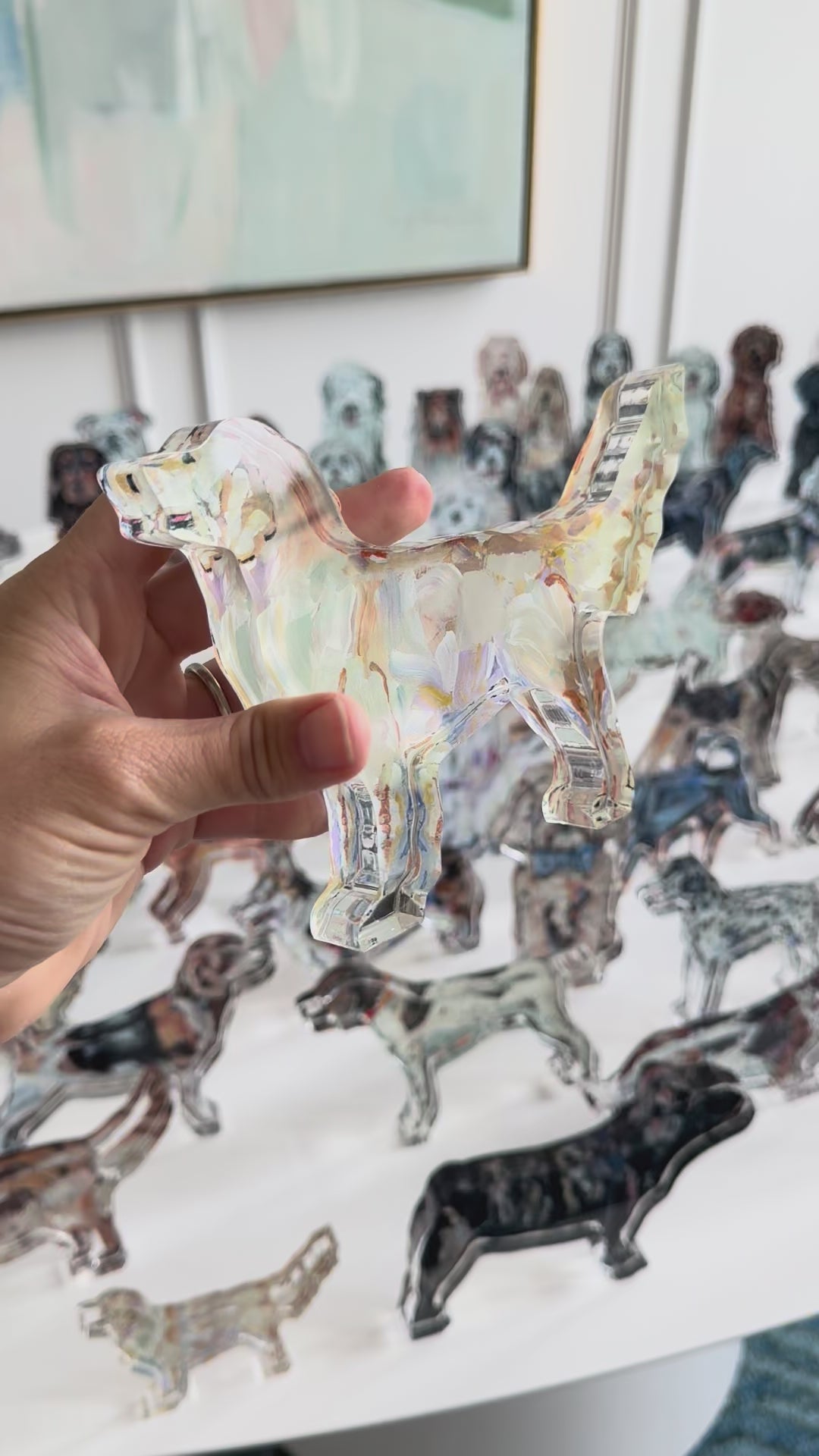 - All acrylic sizes vary depending on design. The larges range between 6X6 to 5X7, 3/4" thick. The minis are on average 2.5 X 4.5", 1/2" thick