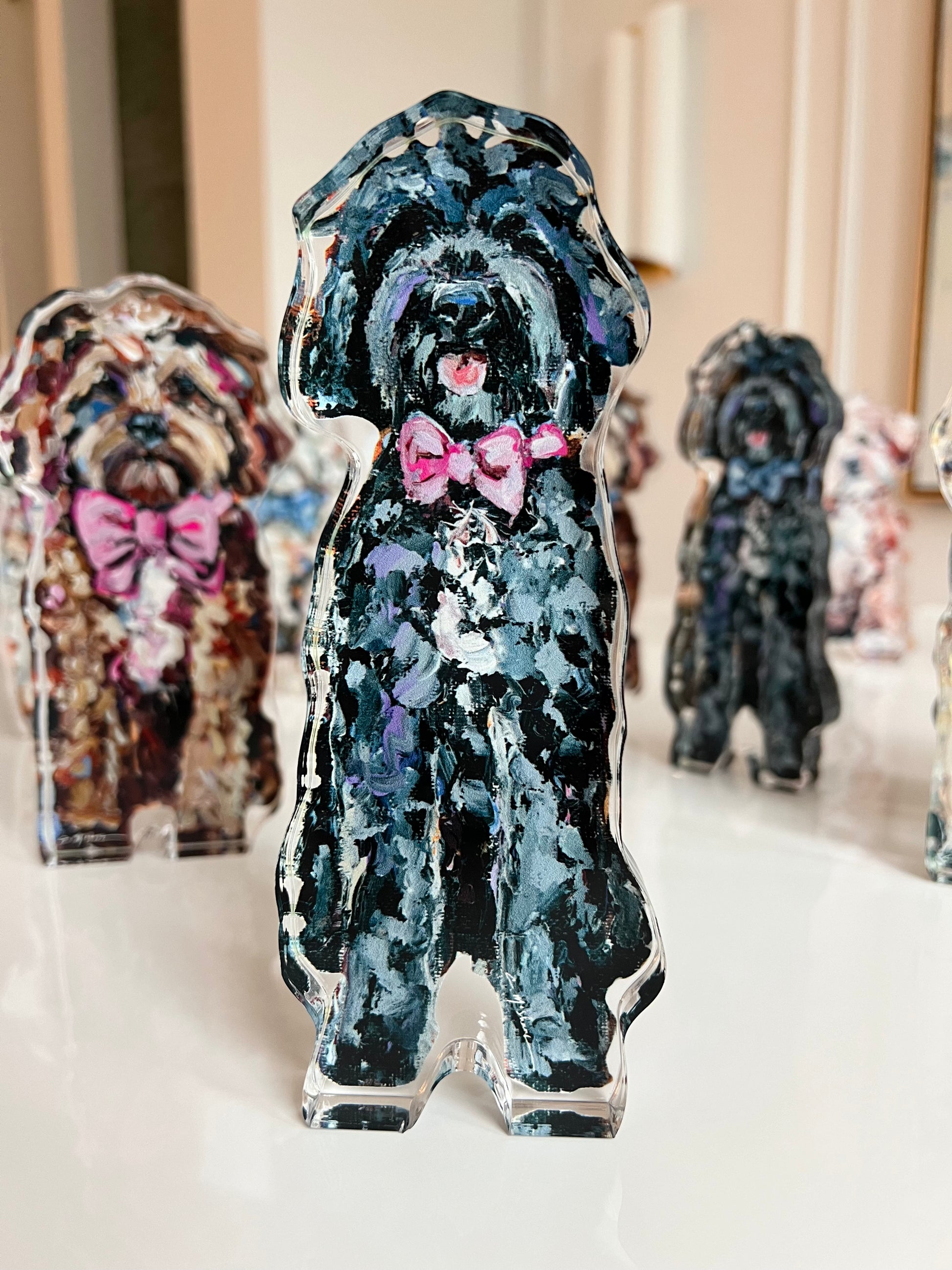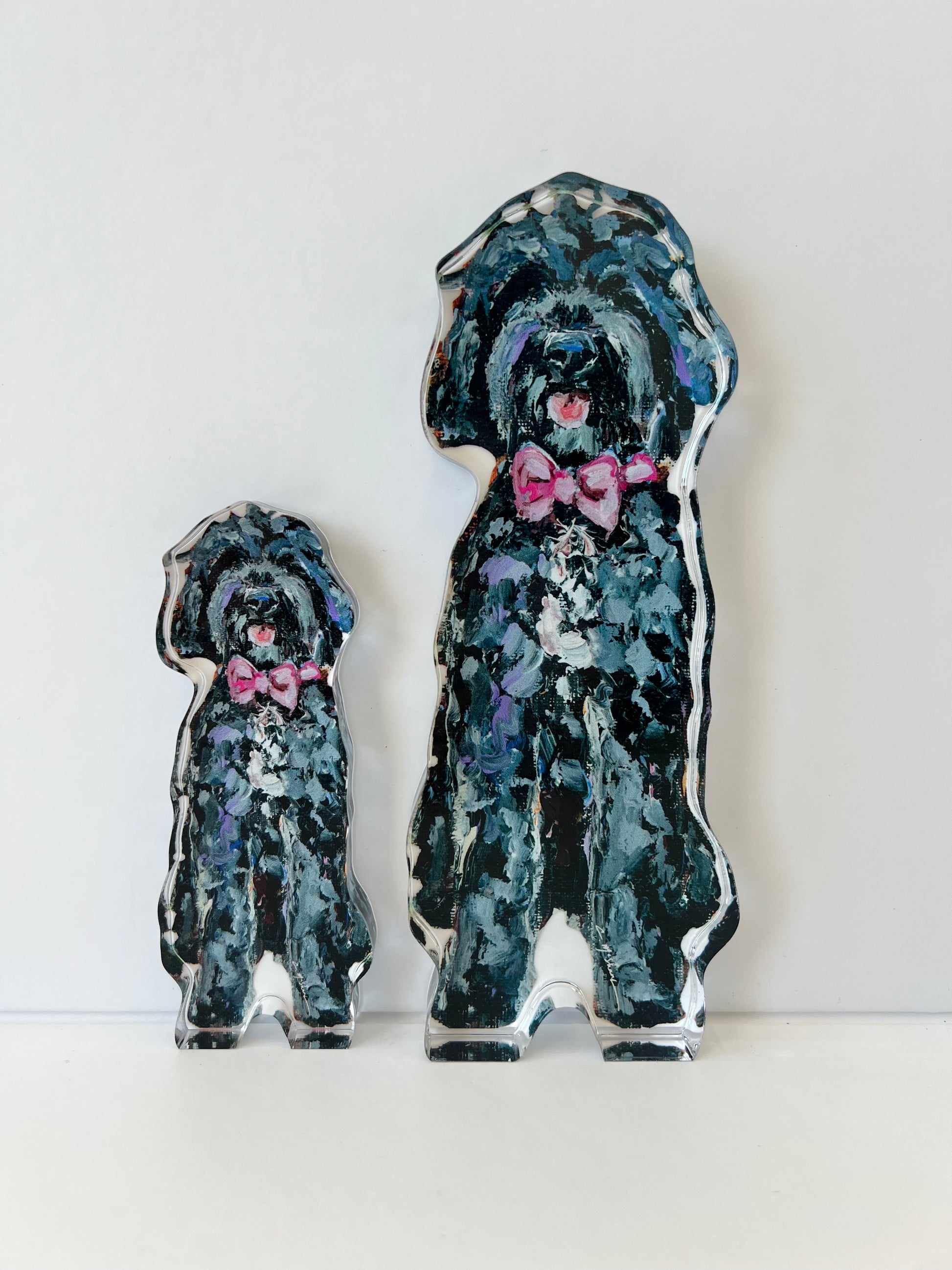 - All acrylic sizes vary depending on design. The larges range between 6X6 to 5X7, 3/4" thick. The minis are on average 2.5 X 4.5", 1/2" thick