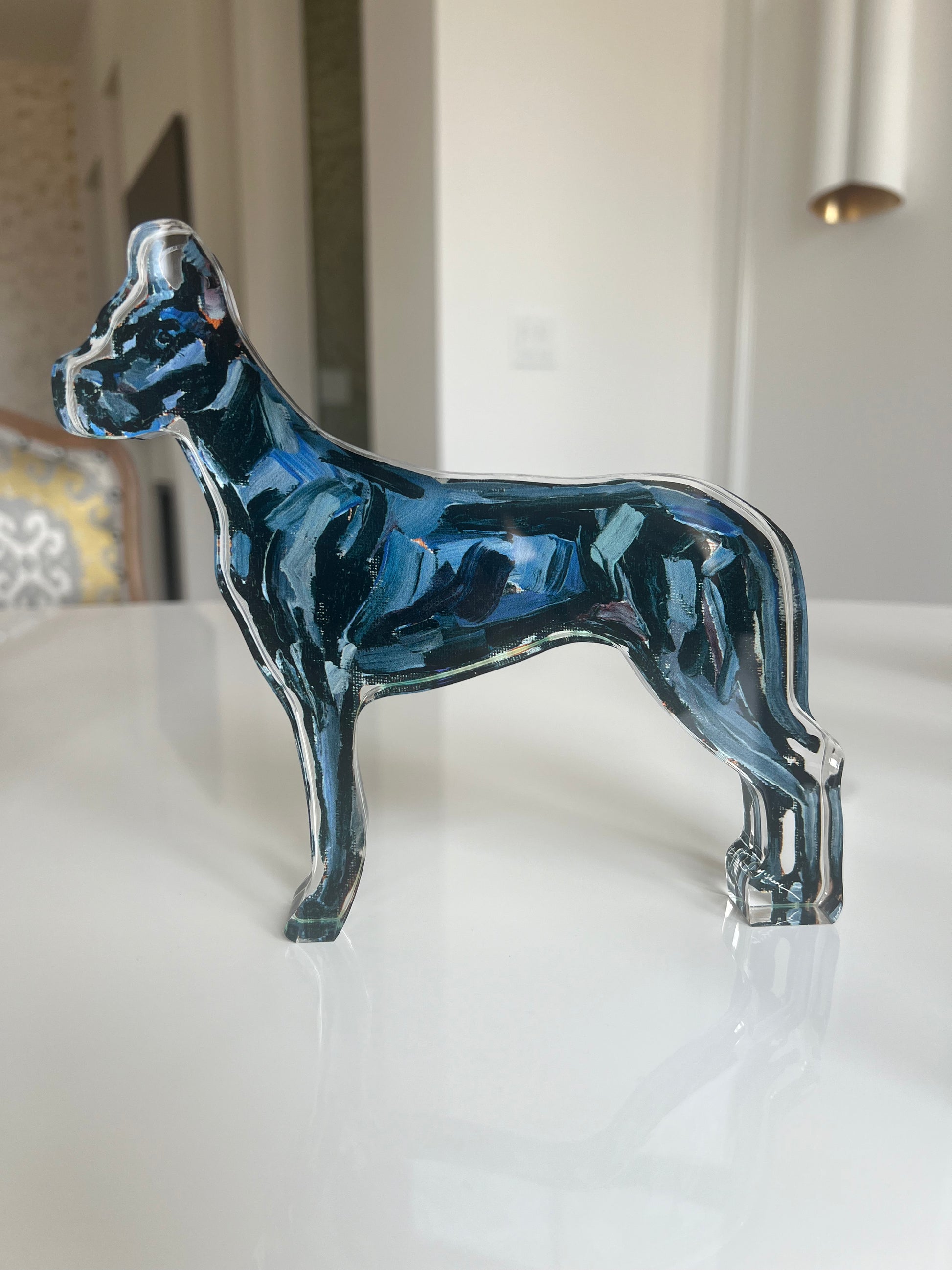 - The art is affixed to a thick, weighted protective acrylic block giving a three dimensional appearance