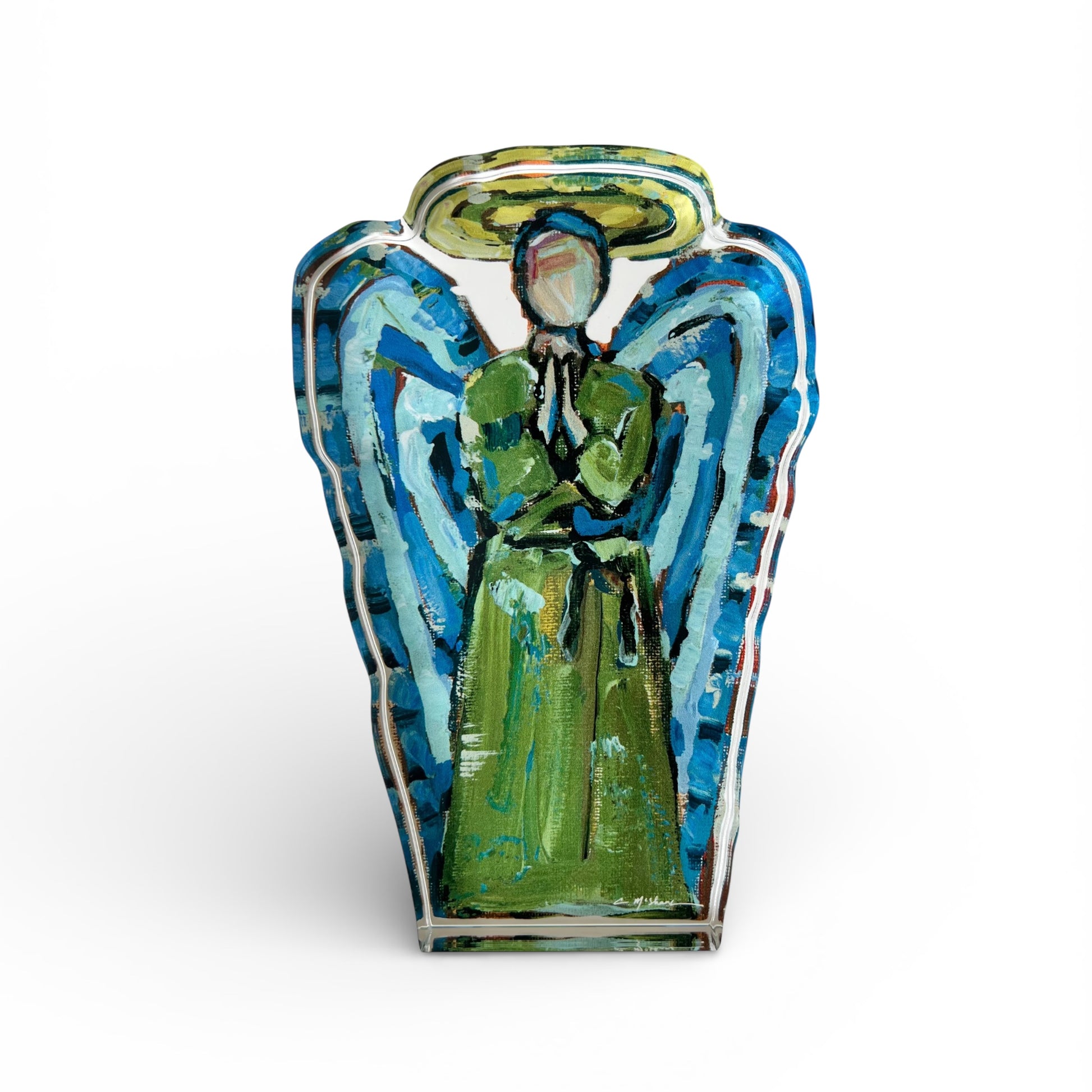 - The art is affixed to a thick, weighted protective acrylic block giving a three dimensional appearance