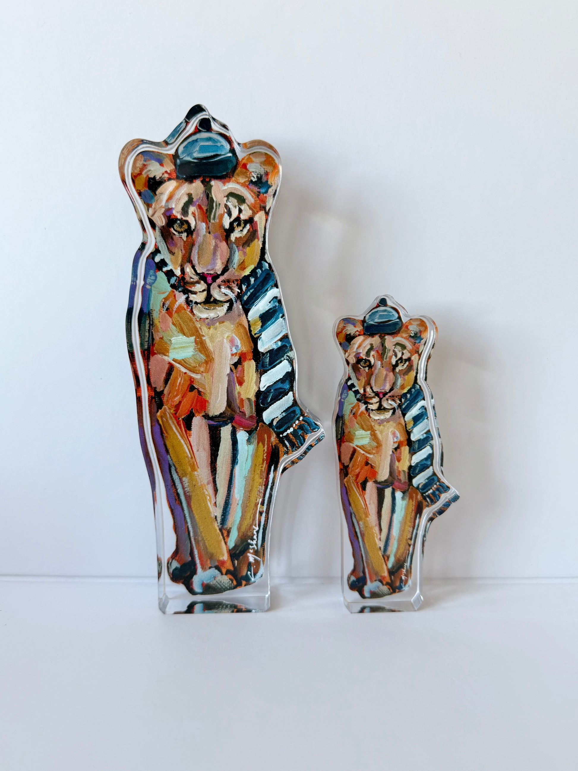 - All acrylic sizes vary depending on design. The larges range between 6X6 to 5X7, 3/4" thick. The minis are on average 2.5 X 4.5", 1/2" thick