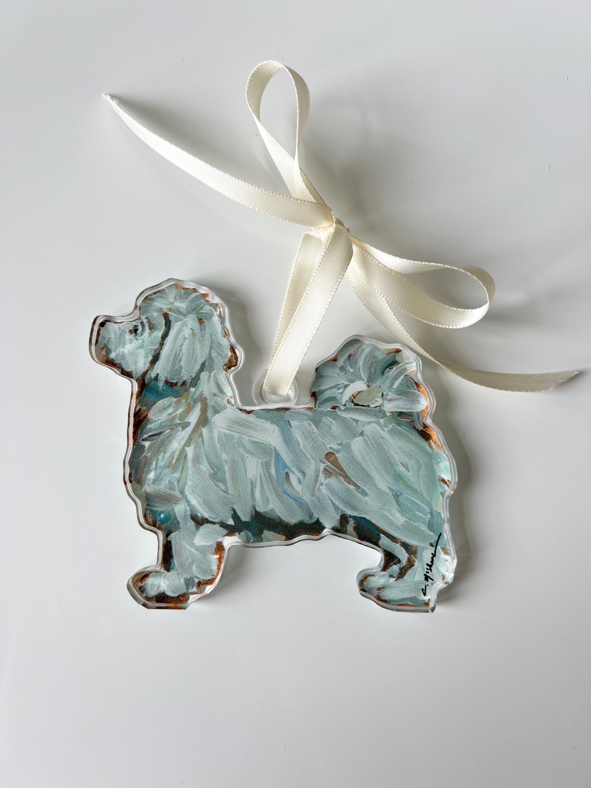 Acrylic ornament printed with Chelsea McShane's original art design