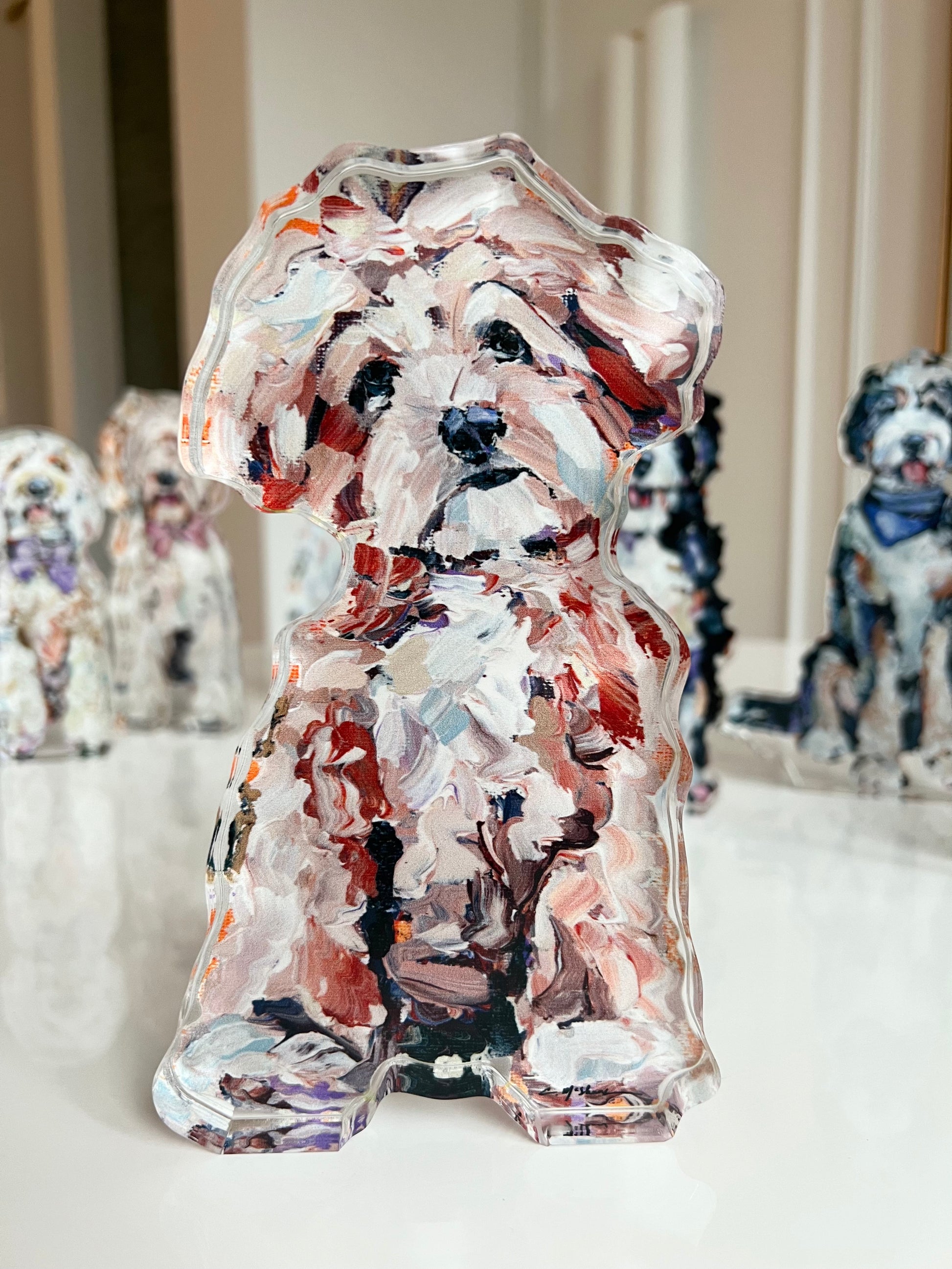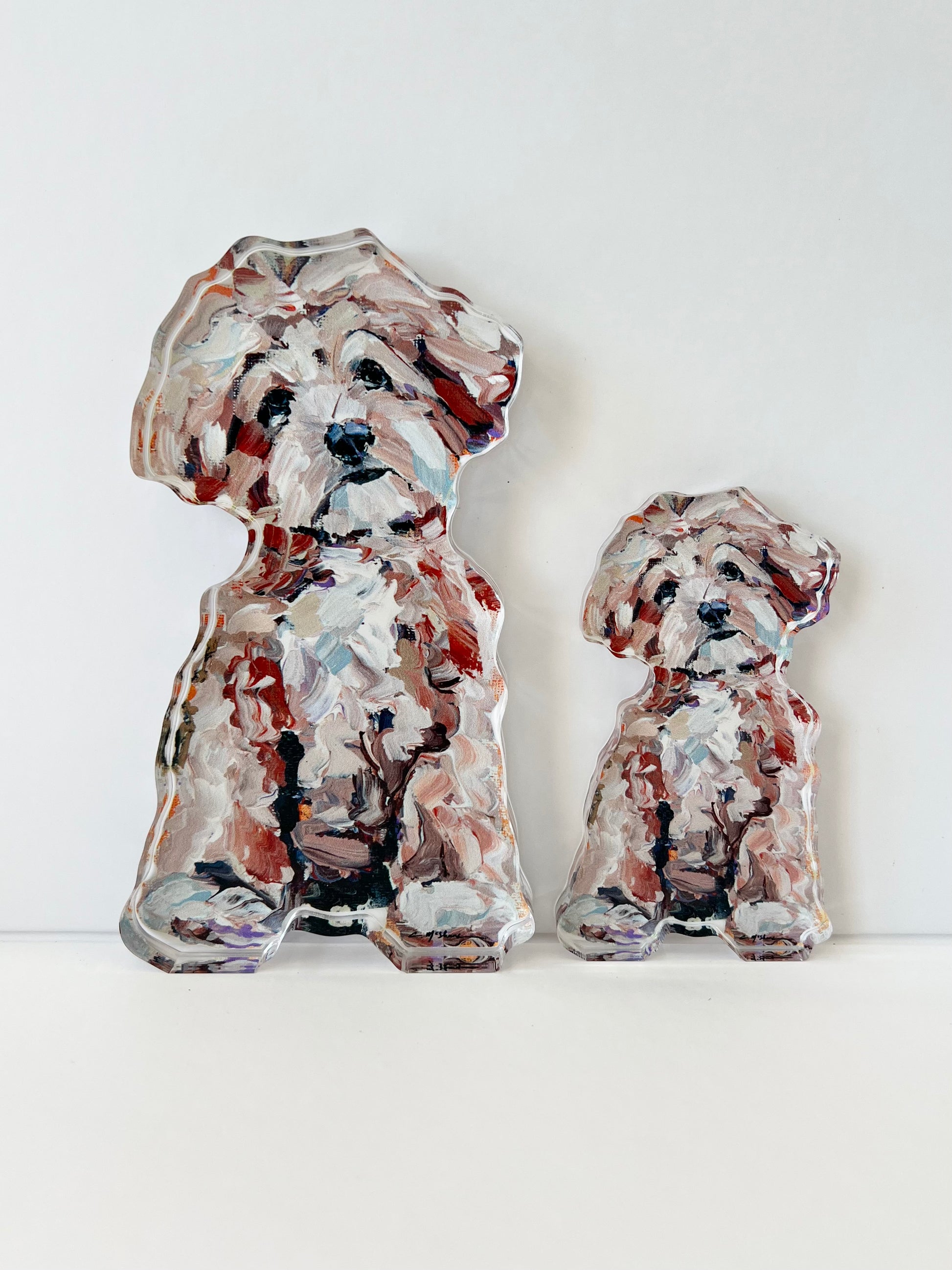 - All acrylic sizes vary depending on design. The larges range between 6X6 to 3X7, 3/4" thick. The minis are on average 2.5 X 4.5", 1/2" thick