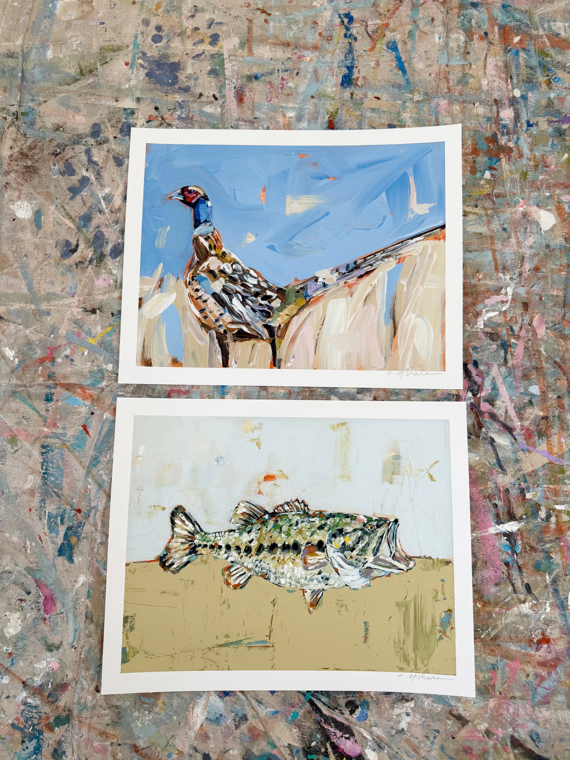 "Pheasant & Bass" 14X11 hand signed paper prints (set of 2)