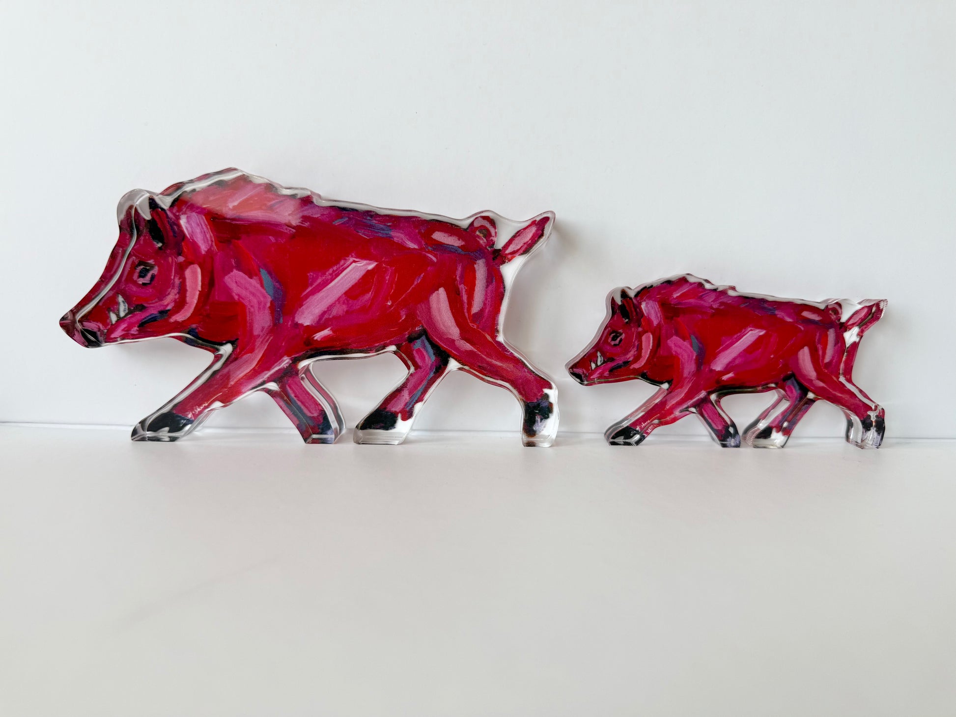 - All acrylic sizes vary depending on design. The larges range between 6X6 to 5X7, 3/4" thick. The minis are on average 2.5 X 4.5", 1/2" thick