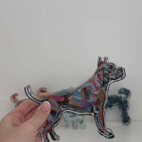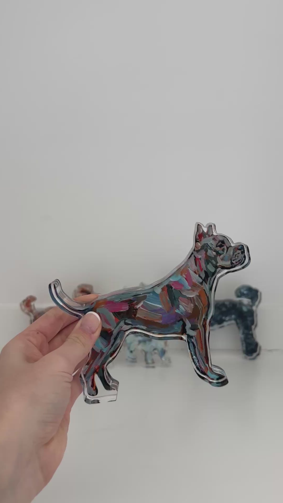 - All acrylic sizes vary depending on design. The larges range between 6X6 to 3X7, 3/4" thick. The minis are on average 2.5 X 4.5", 1/2" thick