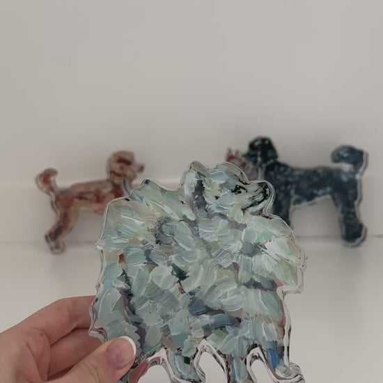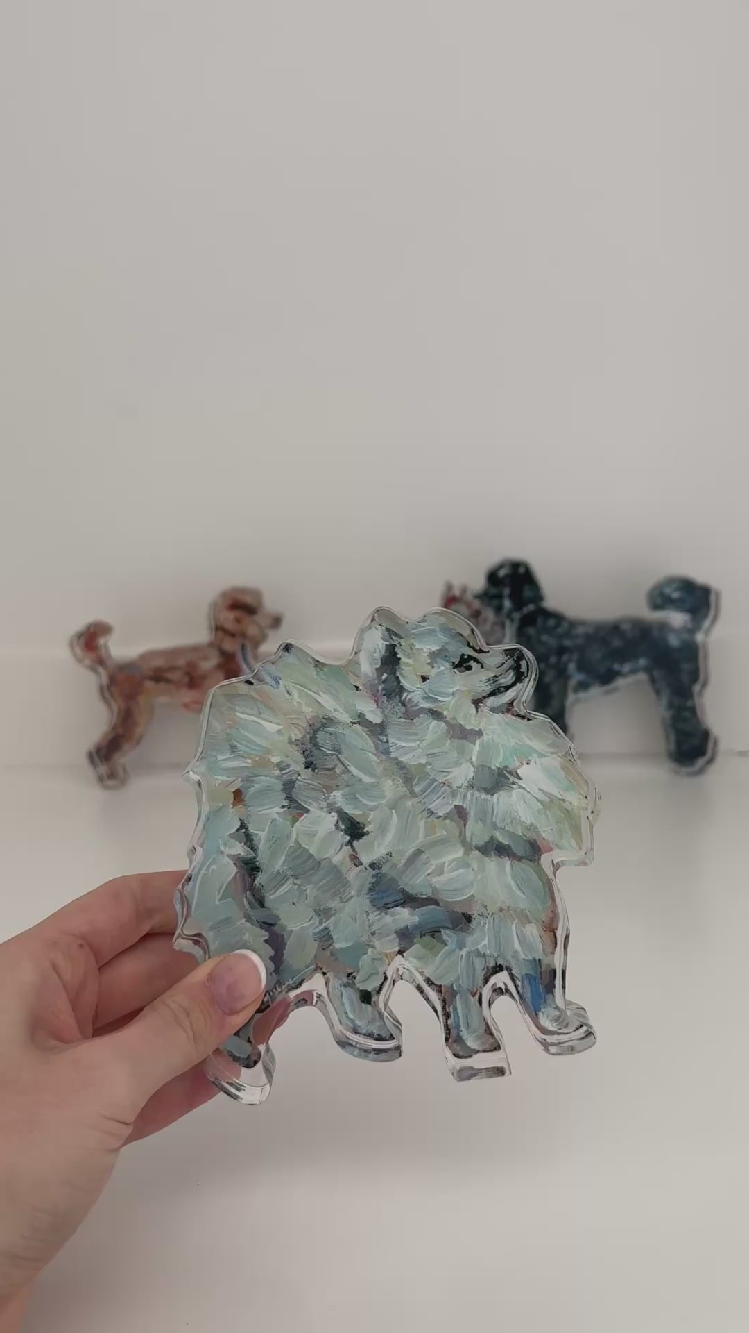 - All acrylic sizes vary depending on design. The larges range between 6X6 to 3X7, 3/4" thick. The minis are on average 2.5 X 4.5", 1/2" thick