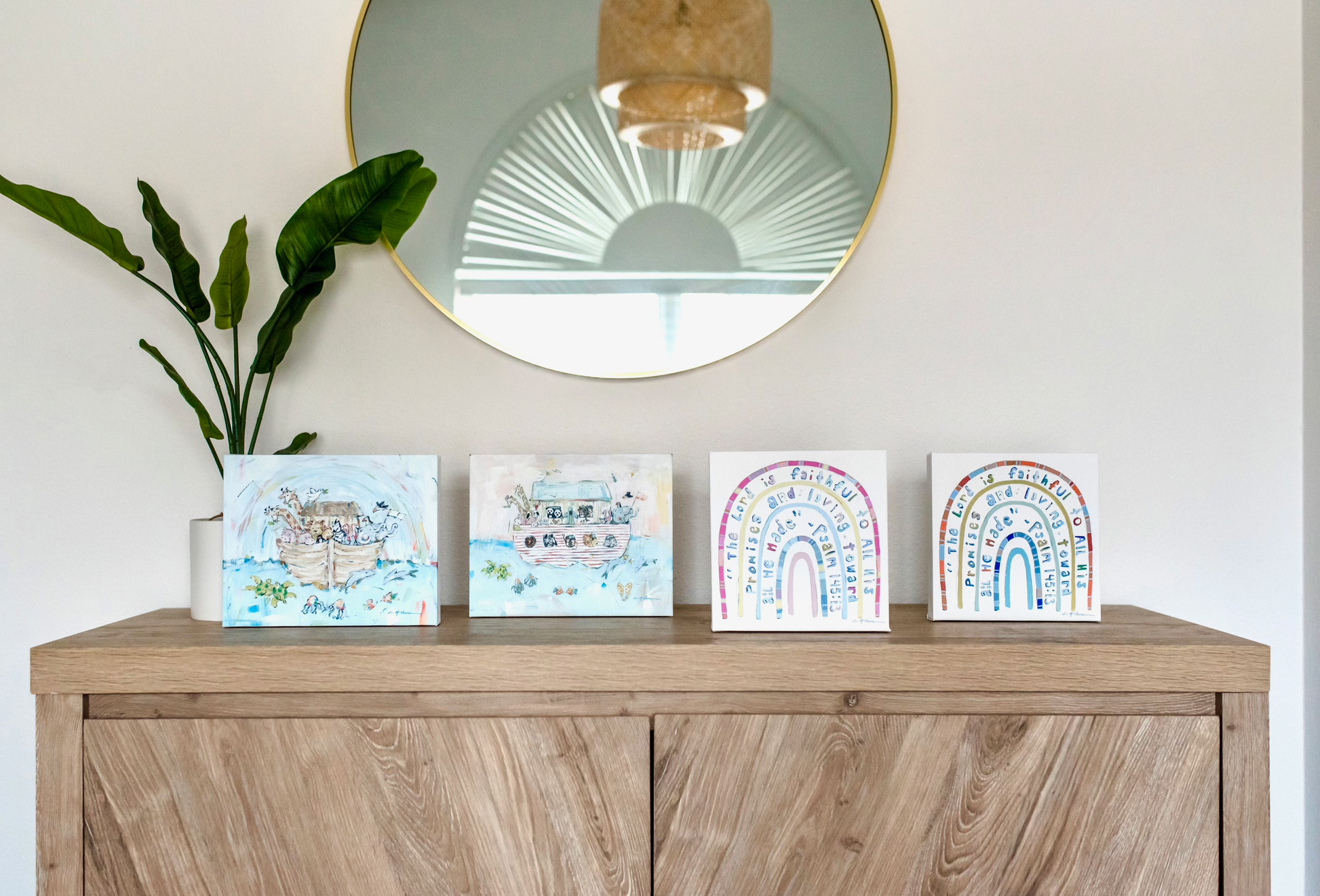 - The 8X8 canvas prints can stand on a shelf/tabletop