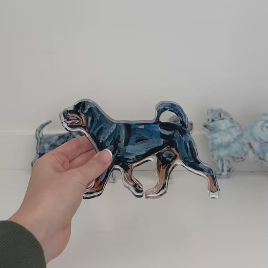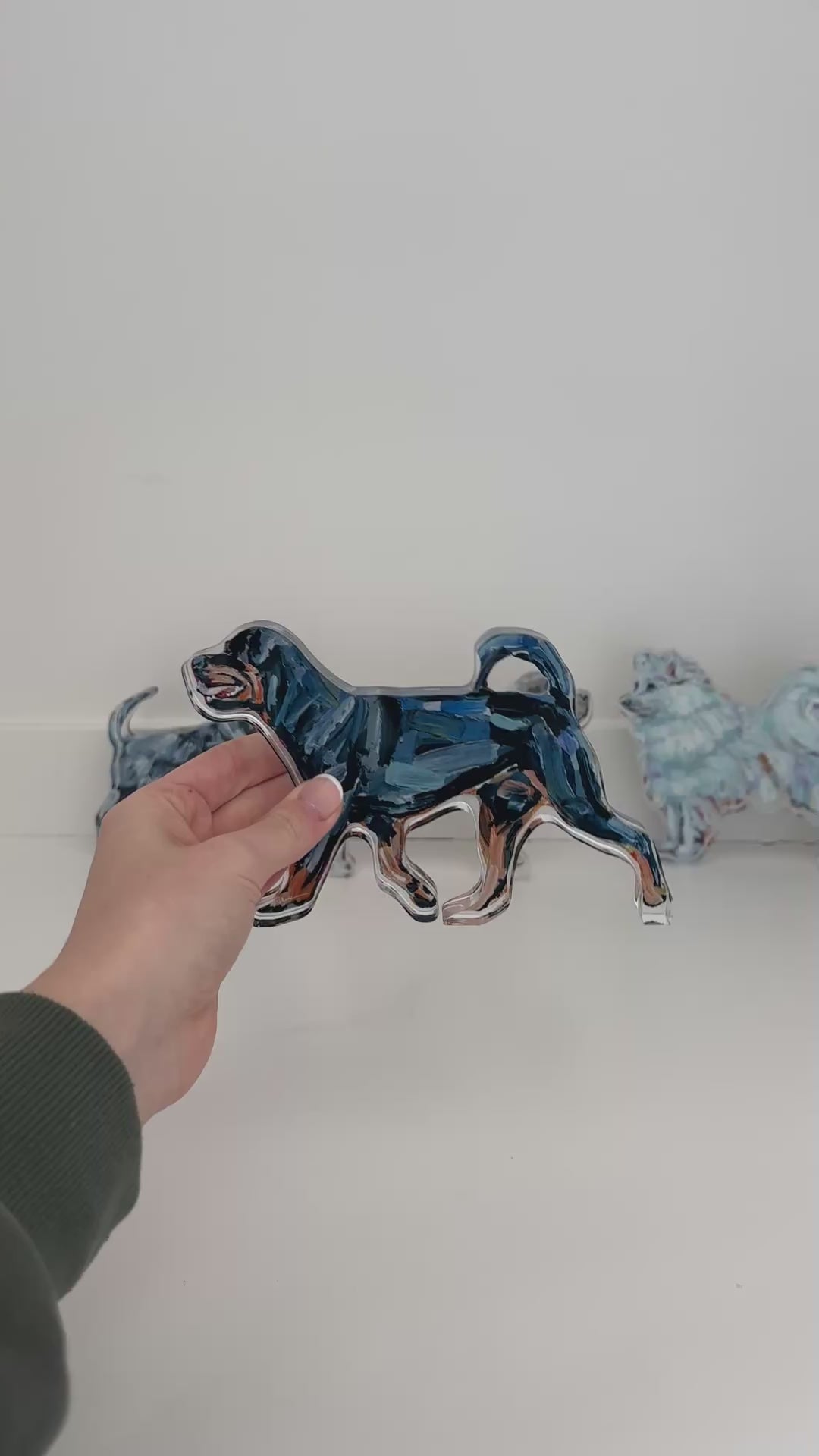 - All acrylic sizes vary depending on design. The larges range between 6X6 to 3X7, 3/4" thick. The minis are on average 2.5 X 4.5", 1/2" thick