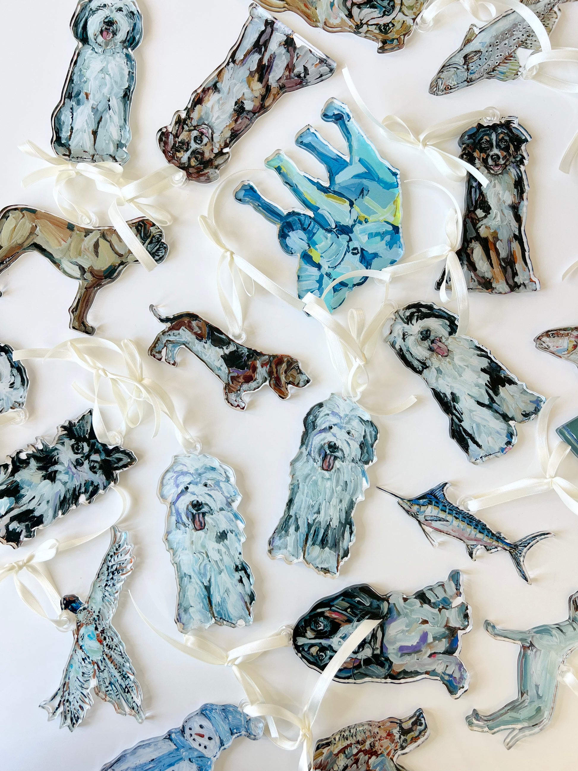 Acrylic ornament printed with Chelsea McShane's original art design