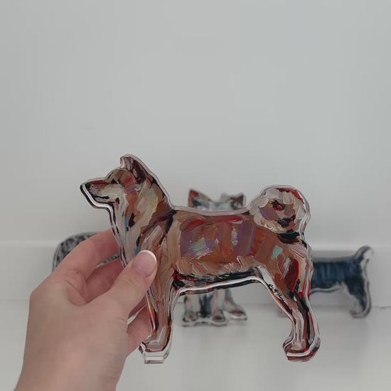 - All acrylic sizes vary depending on design. The larges range between 6X6 to 3X7, 3/4" thick. The minis are on average 2.5 X 4.5", 1/2" thick