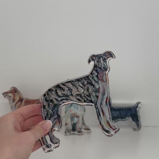 - All acrylic sizes vary depending on design. The larges range between 6X6 to 3X7, 3/4" thick. The minis are on average 2.5 X 4.5", 1/2" thick