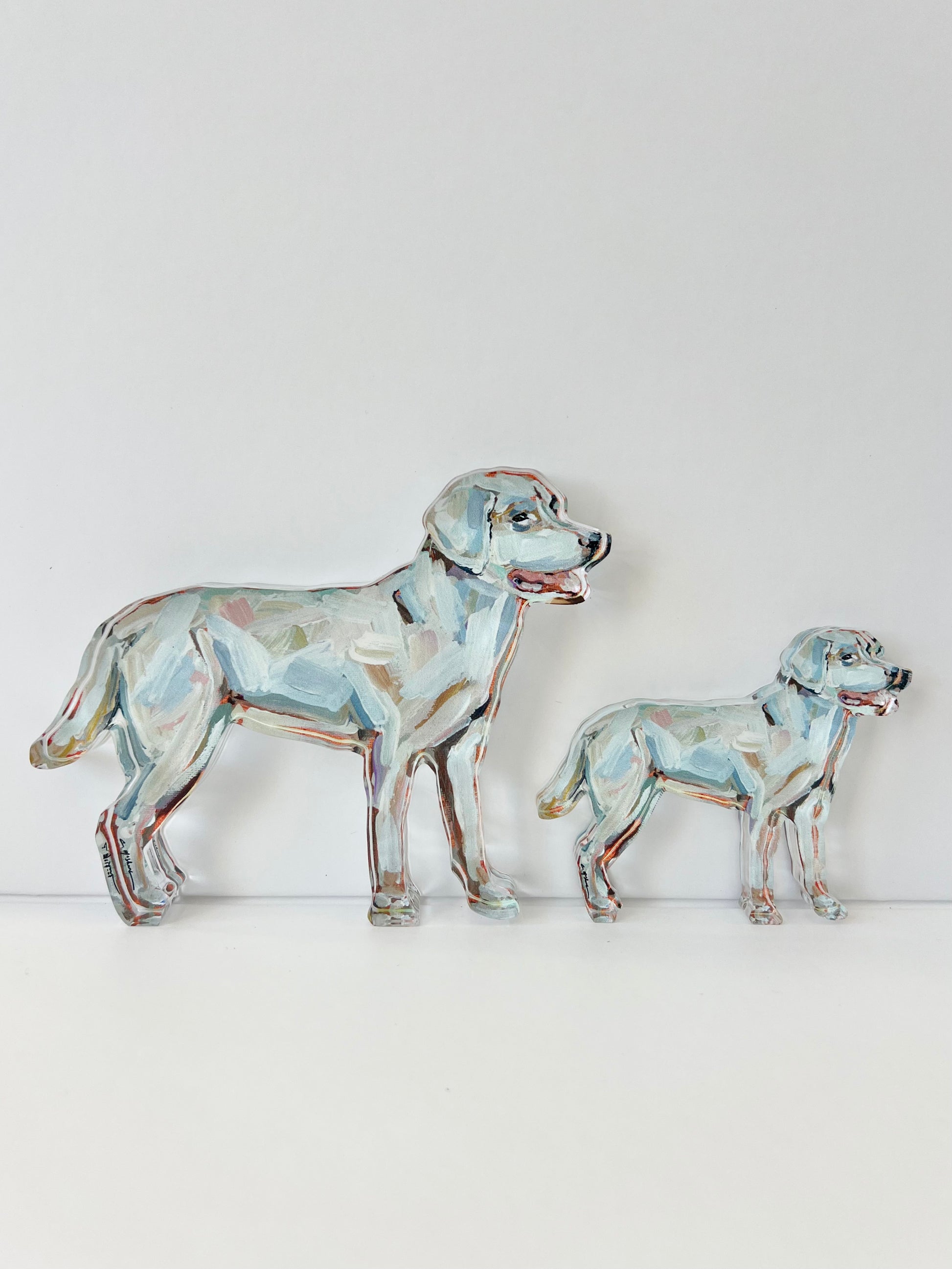 - All acrylic sizes vary depending on design. The larges range between 6X6 to 3X7, 3/4" thick. The minis are on average 2.5 X 4.5", 1/2" thick