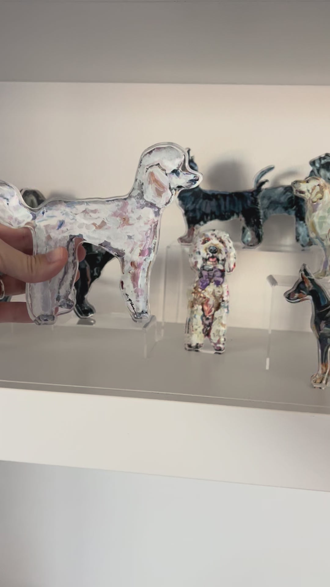 - All acrylic sizes vary depending on design. The larges range between 6X6 to 3X7, 3/4" thick. The minis are on average 2.5 X 4.5", 1/2" thick
